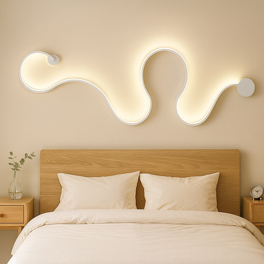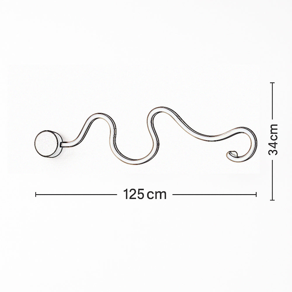 Applique da parete dal design moderno e originale, caratterizzata da una forma sinuosa che richiama il movimento elegante di un serpente. Realizzata in alluminio, questa lampada diventa un vero elemento decorativo capace di trasformare qualsiasi ambiente con la sua presenza scultorea. I LED integrati da 28W assicurano efficienza e durata, mentre la tecnologia CCT con switch sul driver consente di scegliere facilmente tra luce calda, naturale o fredda, adattando l’atmosfera alle diverse esigenze e rendendo ogni spazio più accogliente o più dinamico a seconda del momento. La versatilità è uno dei suoi punti di forza: può essere installata in verticale, orizzontale o diagonale, permettendo di personalizzare la parete secondo il proprio gusto e di creare composizioni luminose uniche. Con un flusso luminoso di 2240 lumen e un angolo di emissione di 180°, garantisce un’illuminazione uniforme e intensa, perfetta per valorizzare salotti, corridoi, camere da letto, ingressi o su una parete di una scala trasformando la salita in un percorso scenografico. Questa applique non è soltanto una fonte di luce, ma un vero oggetto di design che unisce funzionalità e stile contemporaneo, diventando protagonista dell’arredo e donando carattere e personalità all’ambiente.