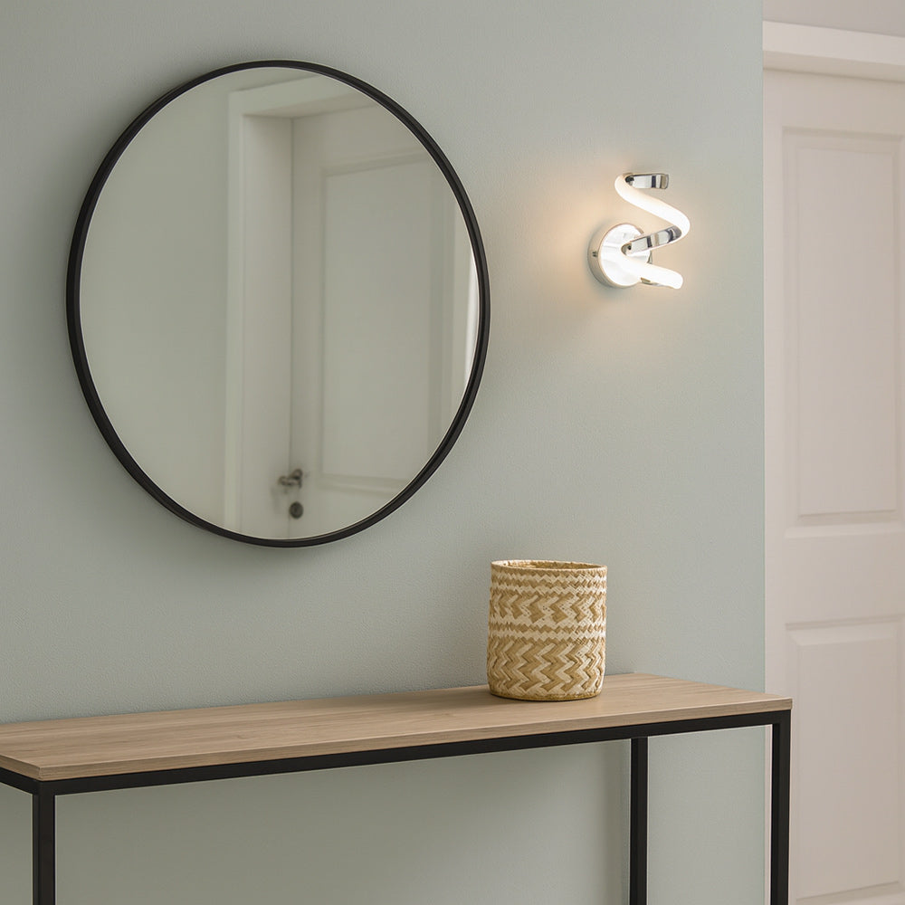 Applique LED dal design moderno e scultoreo, perfette per aggiungere un tocco di eleganza contemporanea a qualsiasi ambiente. La struttura a spirale crea un effetto visivo dinamico e raffinato, mentre la luce si diffonde in modo uniforme grazie a un ampio fascio luminoso di 260 gradi. Con una potenza di 9 watt e un flusso luminoso di 720 lumen, queste lampade offrono un’illuminazione efficace e avvolgente, ideale sia per ambienti residenziali che professionali. Disponibili in due finiture bianco per un look sobrio e minimalista, oppure argento per un effetto più brillante e sofisticato si integrano armoniosamente in diversi stili d’arredo, dal moderno al contemporaneo. La tecnologia CCT integrata consente di scegliere la tonalità di luce più adatta alle proprie esigenze: calda per creare atmosfere rilassanti e accoglienti, naturale per una luce equilibrata e versatile, oppure fredda per ambienti operativi o dal gusto più moderno. La selezione della temperatura colore avviene tramite uno switch posto sul driver, facilmente accessibile prima dell’installazione, ma modificabile anche successivamente, permettendo di adattare l’illuminazione ai diversi momenti della giornata o alle variazioni di stile e funzione dello spazio. Queste applique non sono solo elementi funzionali, ma diventano vere e proprie sculture luminose, capaci di trasformare la parete in un punto focale di grande impatto visivo. Ideali per corridoi, ingressi, soggiorni o camere da letto, offrono una combinazione perfetta tra estetica, comfort visivo e flessibilità d’uso.