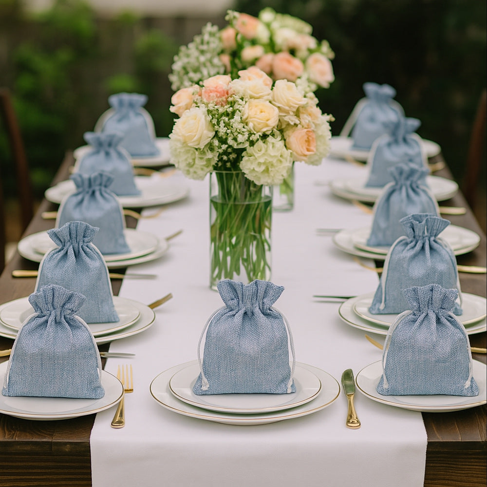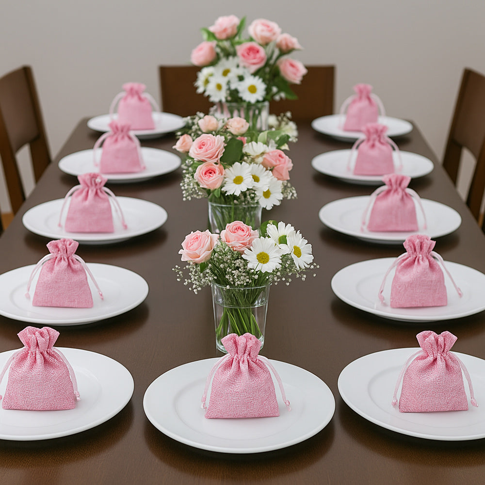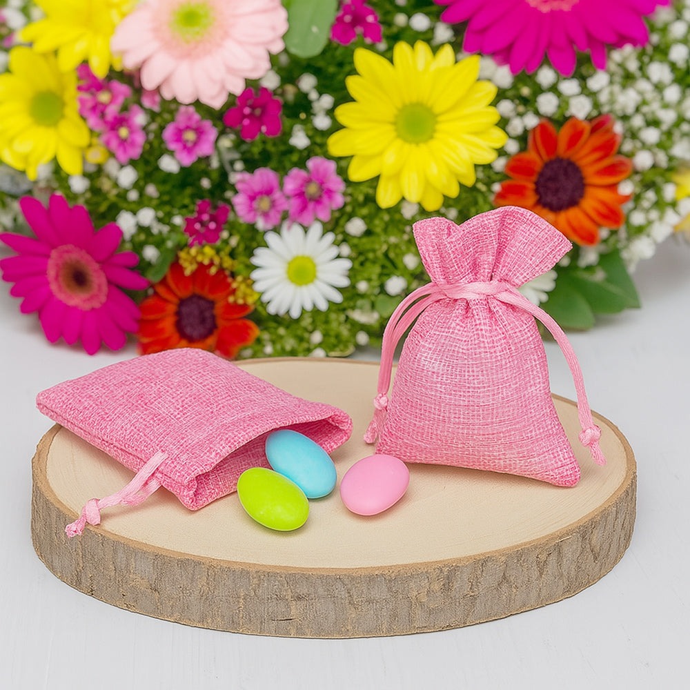 • Un tocco rustico e raffinato per i tuoi momenti speciali. Questo set comprende 12 sacchetti in juta, impreziositi da un morbido cordoncino in tessuto che ne facilita la chiusura. Perfetti per confezionare piccoli regali, bomboniere o portaconfetti, aggiungono calore e personalità a ogni occasione. Ideali per matrimoni, battesimi, comunioni, feste o semplicemente per rendere unico un pensiero. All’interno puoi inserire confetti, caramelle, piccoli oggetti o gioielli, creando un effetto sorpresa elegante e curato. Disponibili in tre delicate tonalità Rosa, Celeste e Beige si adattano con armonia a ogni stile e palette decorativa.
