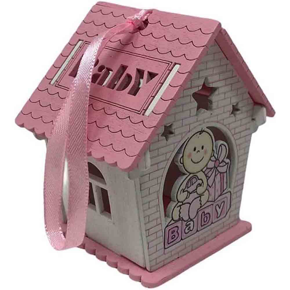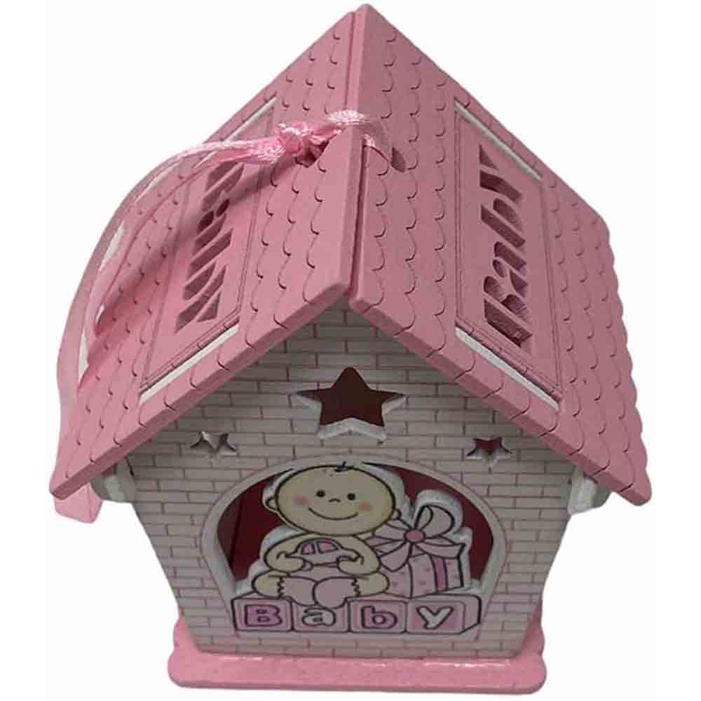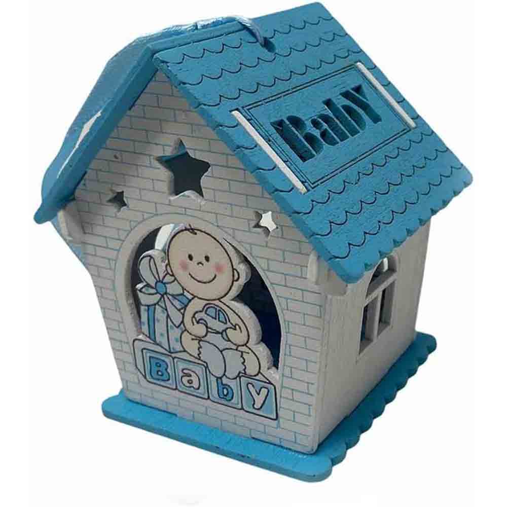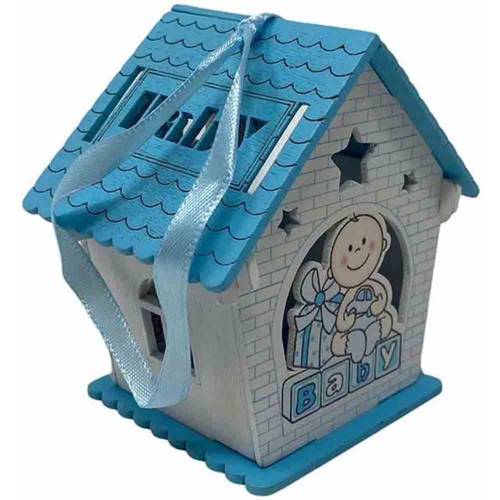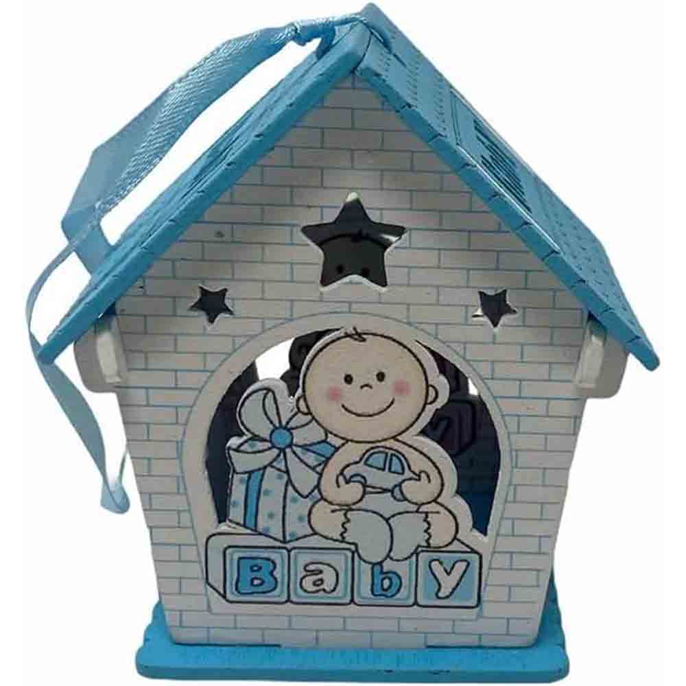Un set incantevole di 12 delicate casette in legno, perfette per celebrare l'arrivo di un nuovo membro della famiglia. Ciascuna casetta è  disponibile in due soffici tonalità: rosa per le principessine e celeste per i piccoli principi. La parte anteriore e posteriore di ogni casetta è decorata con un tenero neonato circondato da doni, un'immagine che evoca gioia e felicità.   Il tetto della casetta si apre, rivelando uno spazio interno perfetto per contenere confetti colorati o piccole caramelle. Un tocco dolce e goloso per i tuoi ospiti.  Lateralmente, le finestre aggiungono un tocco di luminosità e delicatezza. Inoltre, il nastrino sul tetto permette di appendere le casette, trasformandole in originali decorazioni per la cameretta del bambino o per la tavola del buffet.