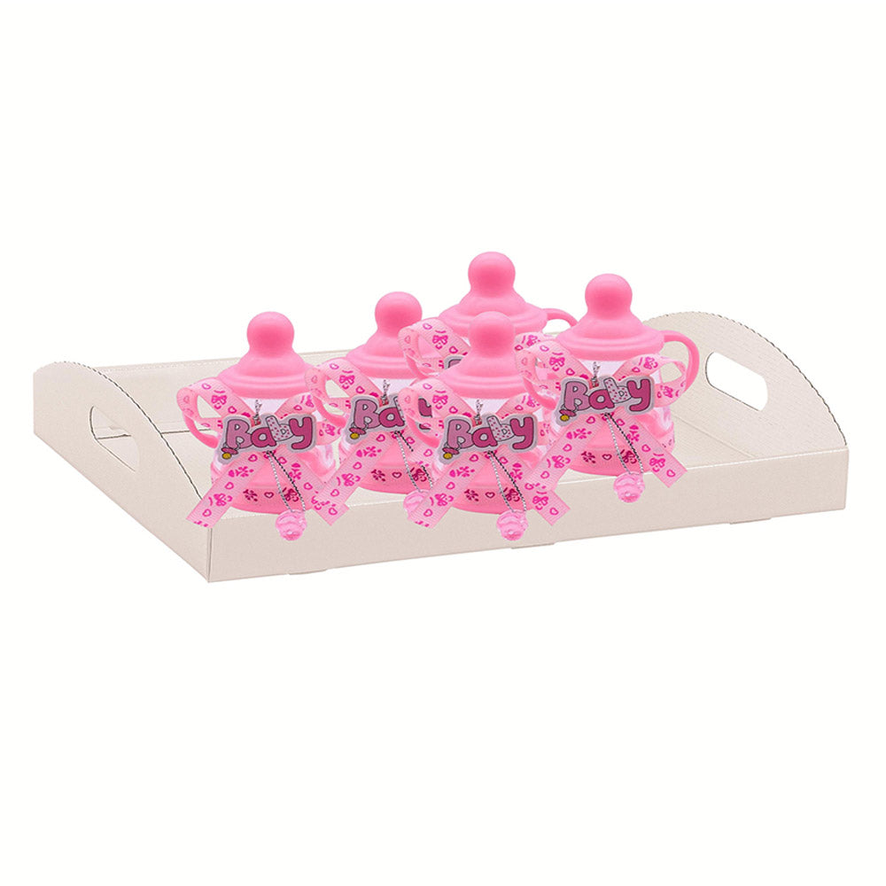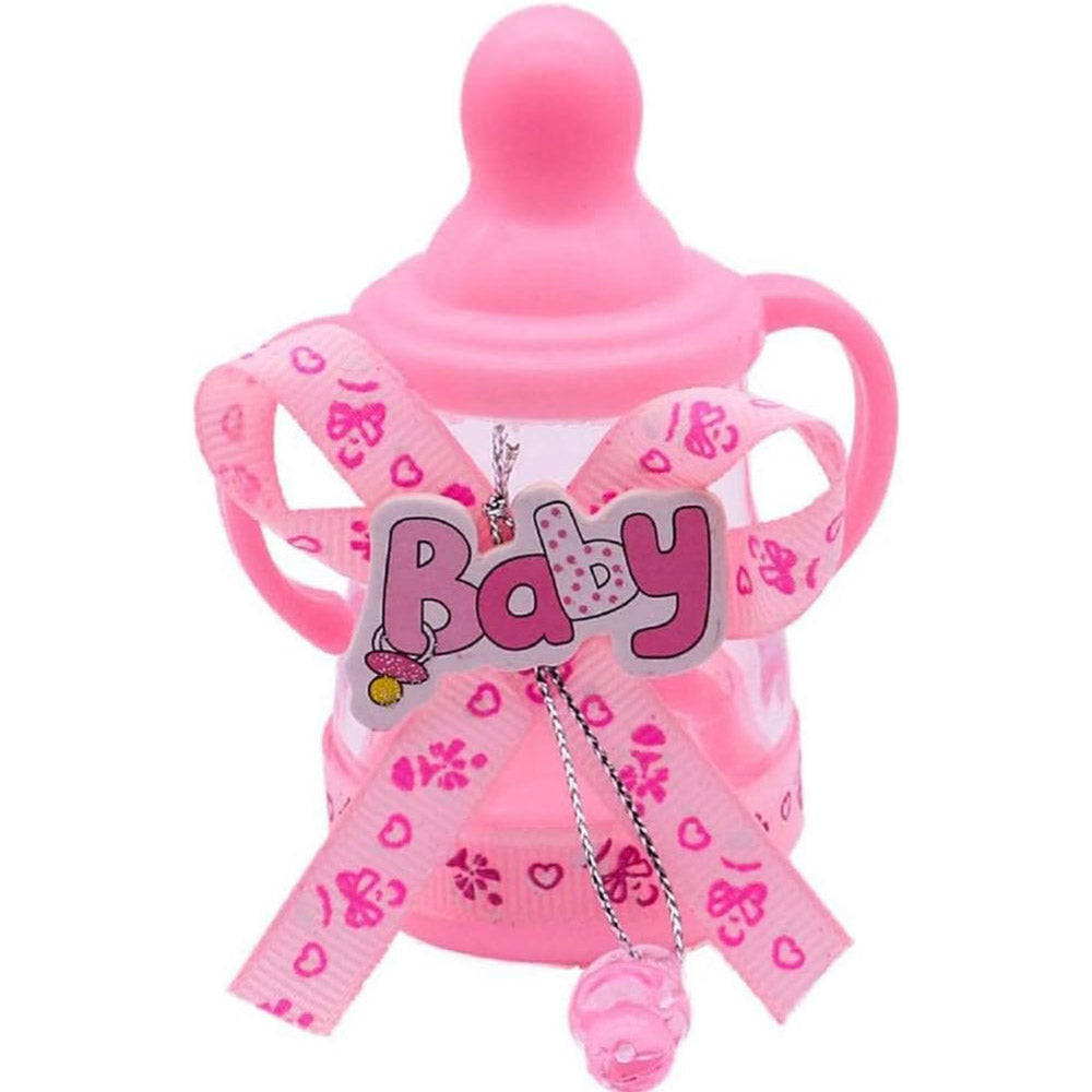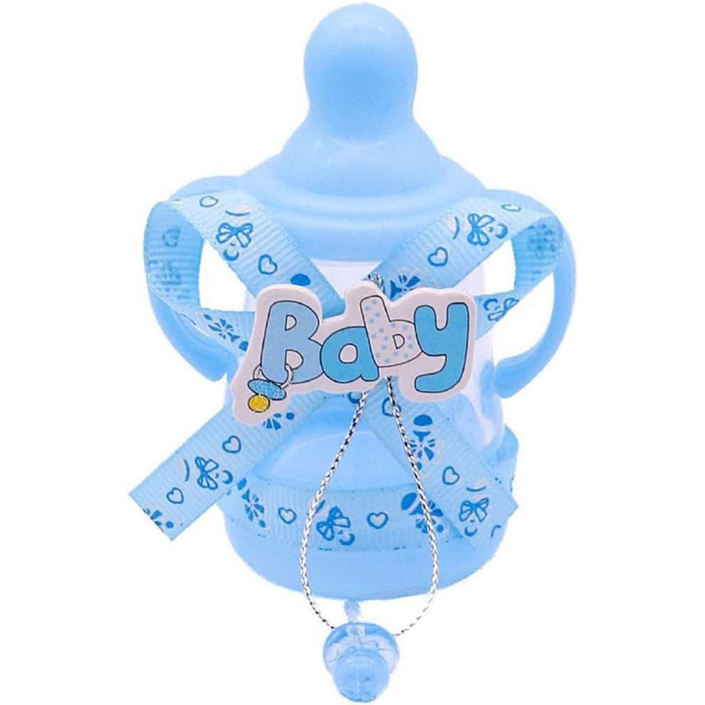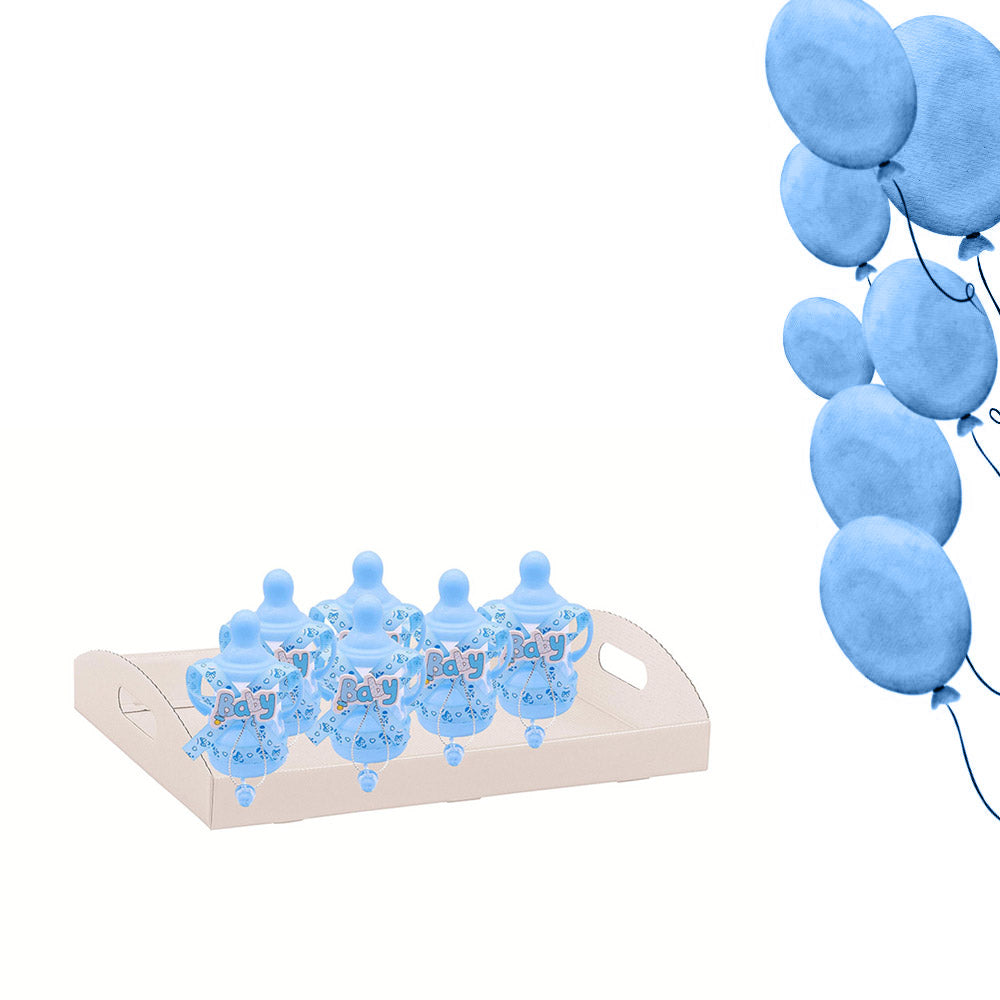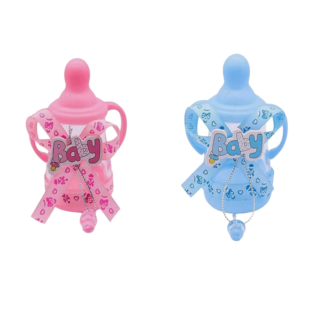 Questo delizioso set è composto da 12 mini biberon, perfetti per contenere confetti e diventare così delle originali bomboniere per celebrare l'arrivo di un nuovo bebè o per un battesimo. Ogni portaconfetti riproduce fedelmente la forma di un classico biberon, un oggetto simbolo dell'infanzia.  Ad ogni biberon è attaccato un piccolo ciuccio, che aggiunge un tocco ancora più tenero e personalizzato. Sul bordo di ogni biberon è presente un elegante nastrino,  che completa l'estetica raffinata. Puoi scegliere tra due tonalità, il rosa o il celeste, entrambe perfette per celebrare una nascita sia di una femminuccia che di un maschietto.  Questi portaconfetti sono ideali per essere riempiti con confetti colorati o con piccole caramelle, creando così dei doni unici e personalizzabili per i tuoi ospiti. Possono essere utilizzati sia per una nascita che per un battesimo, e sono perfetti per decorare le tavole o creare delle piccole bomboniere.