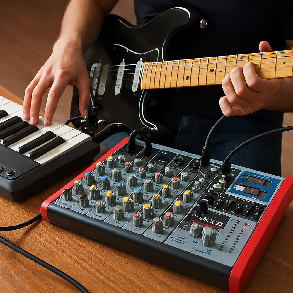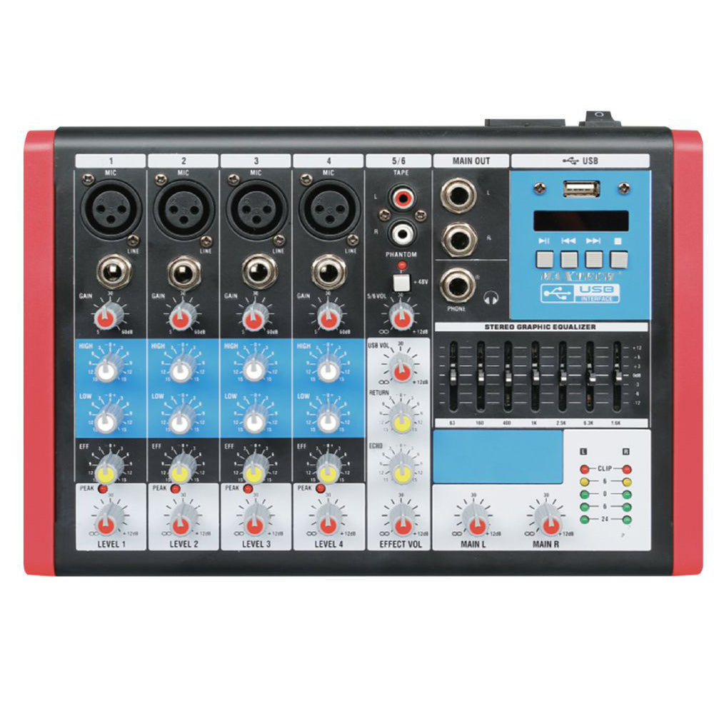 Il mixer professionale a 6 canali è la soluzione ideale per chi desidera mixare fino a otto fonti audio differenti in un unico flusso sonoro coerente e di alta qualità. Dotato di sei ingressi XLR per microfoni a condensatore con alimentazione phantom +48V, garantisce una resa vocale nitida e potente, perfetta per registrazioni, eventi live o produzioni in studio. La versatilità è assicurata grazie all’ingresso USB per la riproduzione diretta di file audio digitali, ai 4 ingressi HI-LINE per strumenti o sorgenti ad alta impedenza, e agli ingressi TAPE RCA per dispositivi analogici. Ogni canale è gestibile con precisione grazie alle manopole dedicate per ECO, GAIN, controllo del volume (VOL+/-), RETURN e PEAK, che permettono di modellare il suono in base alle esigenze specifiche. L’equalizzatore stereo integrato consente di bilanciare le frequenze del segnale audio, offrendo un mix sempre equilibrato e professionale. Il display intuitivo facilita la gestione dei file provenienti dall’ingresso USB, rendendo l’interfaccia semplice e accessibile anche durante le performance dal vivo. L’alimentazione universale AC 110–240V 50–60Hz rende questo mixer perfetto per qualsiasi ambiente, sia in studio che in mobilità. Robusto, affidabile e ricco di funzionalità, è lo strumento indispensabile per musicisti, tecnici del suono, podcaster e creativi che cercano il massimo controllo e la massima qualità in ogni progetto audio.