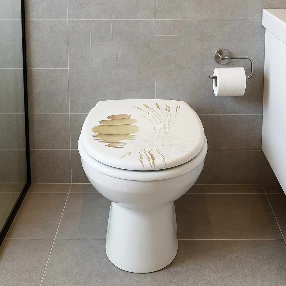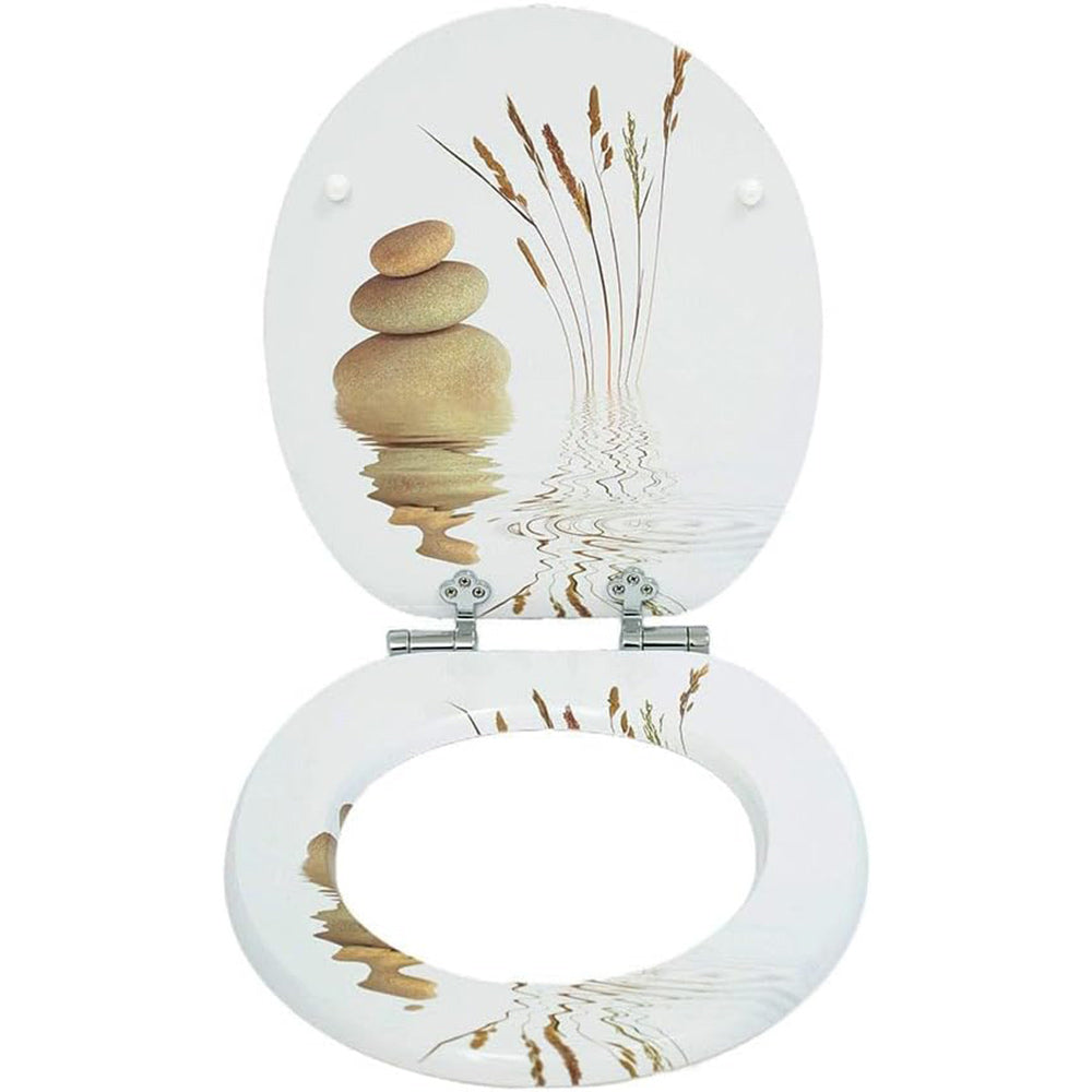 Copriwater universale in legno mdf cerniere con stampa spighe e sassi