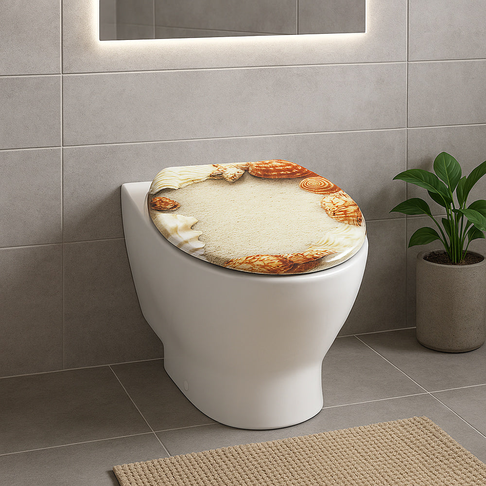Aggiungi un tocco di charme costiero al tuo bagno con questo copriwater universale in legno MDF, impreziosito da una stampa che raffigura la spiaggia. Realizzato in MDF resistente e liscio al tatto, unisce funzionalità e stile in un unico prodotto. Le robuste cerniere in acciaio inox garantiscono una chiusura stabile, sicura e durevole nel tempo. Facile da installare e compatibile con la maggior parte dei sanitari standard, è la scelta perfetta per chi desidera un bagno elegante e accogliente, con un chiaro richiamo allo spirito del mare.  Nella confezione troverete il kit per il montaggio. Dimensioni: 420x355 mm