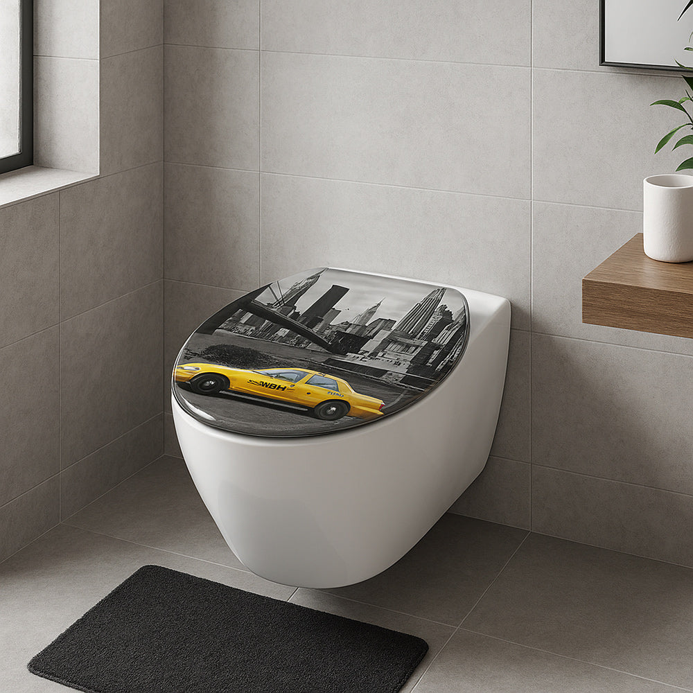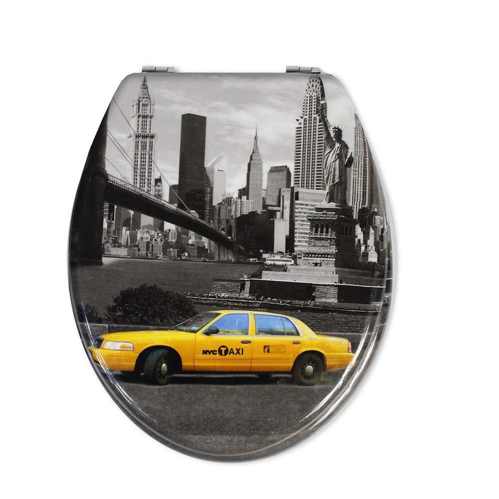 Aggiungi un tocco di charme costiero al tuo bagno con questo copriwater universale in legno MDF, impreziosito da una stampa che raffigura la statua della libertà e un taxi. Realizzato in MDF resistente e liscio al tatto, unisce funzionalità e stile in un unico prodotto. Le robuste cerniere in acciaio inox garantiscono una chiusura stabile, sicura e durevole nel tempo. Facile da installare e compatibile con la maggior parte dei sanitari standard, è la scelta perfetta per chi desidera un bagno elegante e accogliente, con un chiaro richiamo allo spirito del mare. Nella confezione troverete il kit per il montaggio. Dimensioni: 420x355 mm