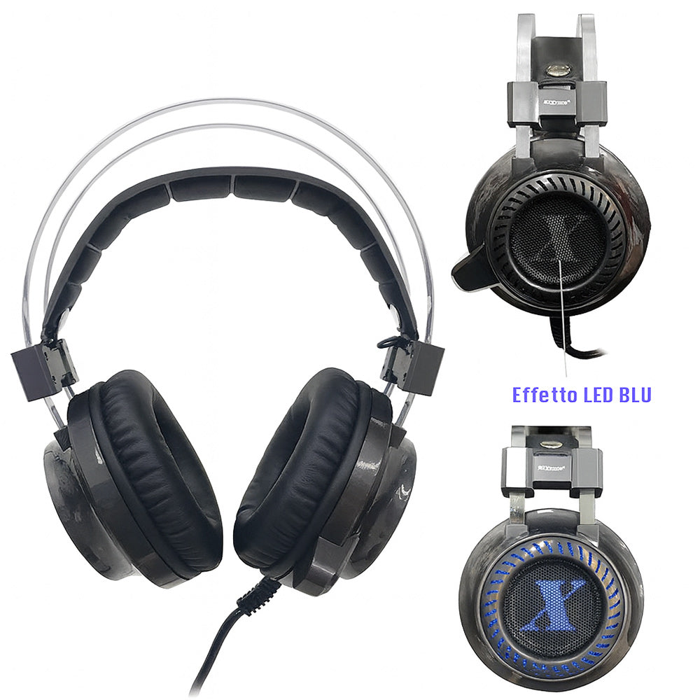 Cuffia gaming compatibilità universale con LED blu e cavo da 2mt