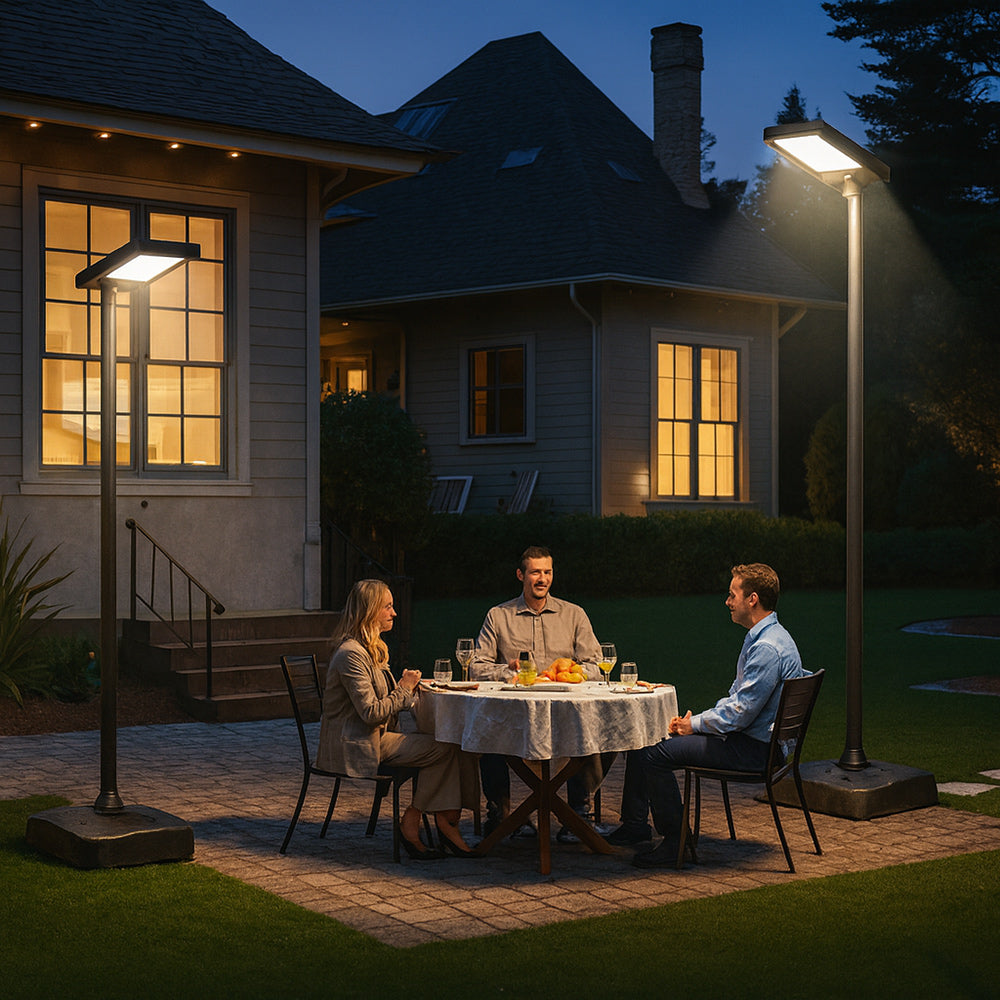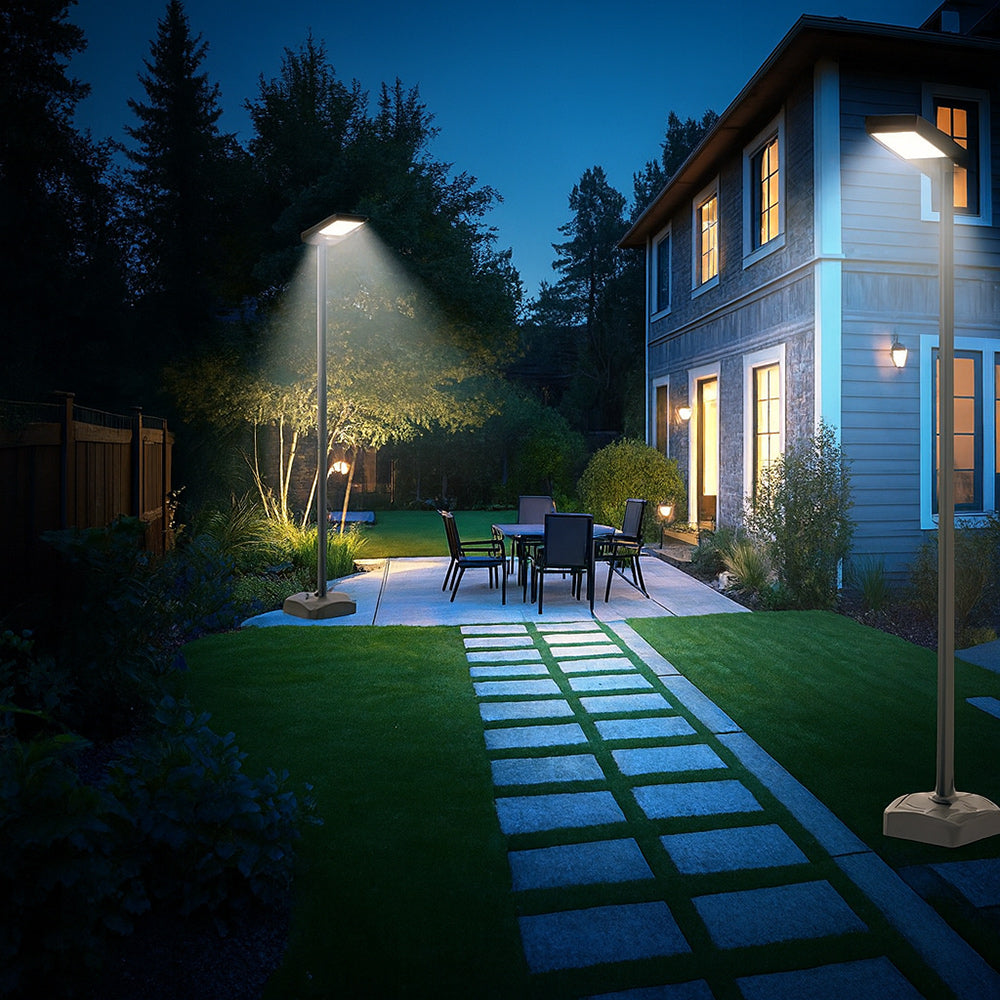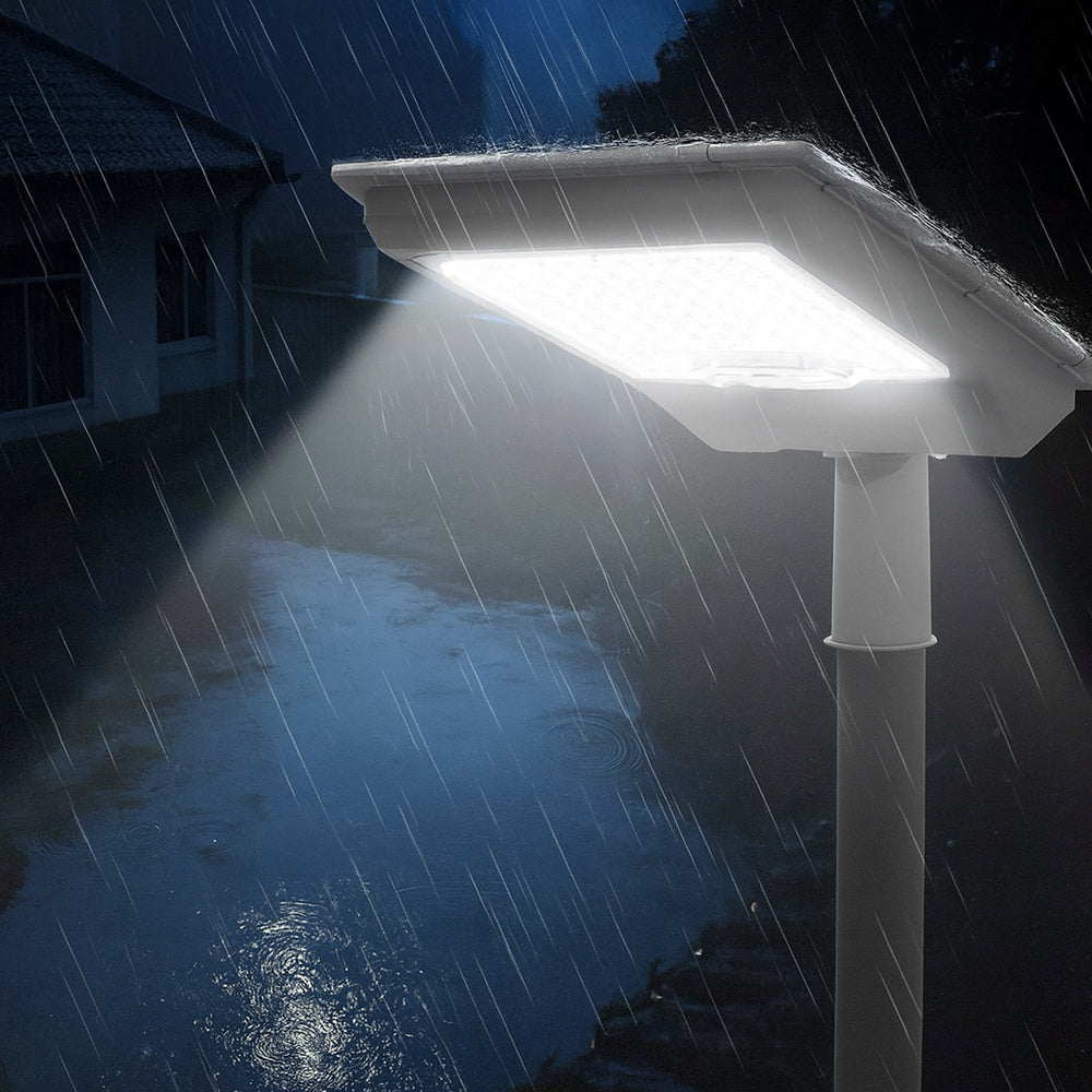Lampione stradale solare da 290 watt, ideale per illuminare strade, giardini, ville e campi con efficienza e autonomia. Dotato di tecnologia CCT, permette di scegliere tra luce fredda, calda o naturale e di gestire tutte le funzioni tramite telecomando incluso. Offre un flusso luminoso di 2900 lumen con fascio ampio da 120°, garantendo una copertura uniforme. Il pannello solare da 25W 5V assicura una ricarica completa in circa 4-6 ore, con un’autonomia di 12-14 ore, ed è possibile ricaricarlo anche tramite cavetto type-c non incluso. La batteria integrata da 3.2V 24AH garantisce prestazioni affidabili e durature. La struttura è composta da un palo componibile con altezza massima di 2630 mm e da una base riempibile con acqua per una stabilità ottimale. Con grado di protezione IP54, resiste a polvere e spruzzi d’acqua, risultando perfetto per ogni stagione e per diversi contesti esterni. Un sistema di illuminazione moderno, sostenibile e versatile che unisce praticità, design e risparmio energetico.