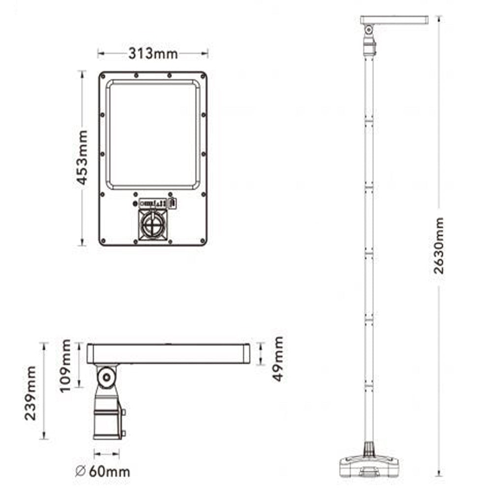 Lampione solare 290 watt tecnologia CCT con telecomando e palo