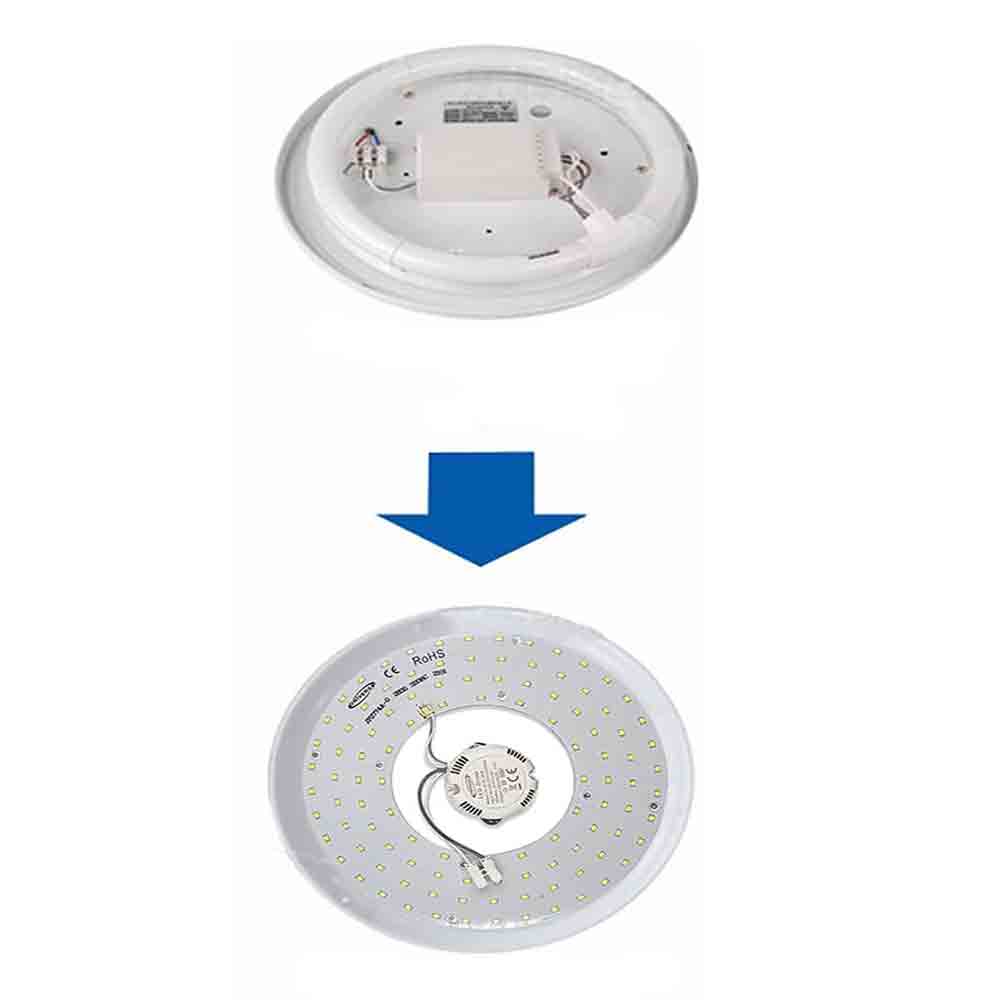 Stai cercando un modo semplice ed efficace per sostituire il vecchio neon circolare della tua plafoniera? Il nostro ricambio LED è la scelta ideale! Progettato per offrire un'illuminazione brillante, efficiente e durevole, questo prodotto è facile da installare e si adatta perfettamente a qualsiasi ambiente. Non è necessario chiamare un elettricista! Basta rimuovere il vecchio neon, lo starter e il reattore dalla plafoniera e inserire il nuovo modulo LED. I supporti magnetici assicurano un fissaggio sicuro alla base in alluminio. Con una potenza di 54 watt e un flusso luminoso di 5400 lumen, questa circolina LED consuma molta meno energia rispetto ai neon tradizionali, garantendo un notevole risparmio sulla bolletta elettrica. Con un angolo di fascio di 120°, il ricalibro LED illumina in modo uniforme l'intera area. Scegli la temperatura di colore che preferisci: luce fredda (6500K), calda (3000K) o naturale (4000K).
