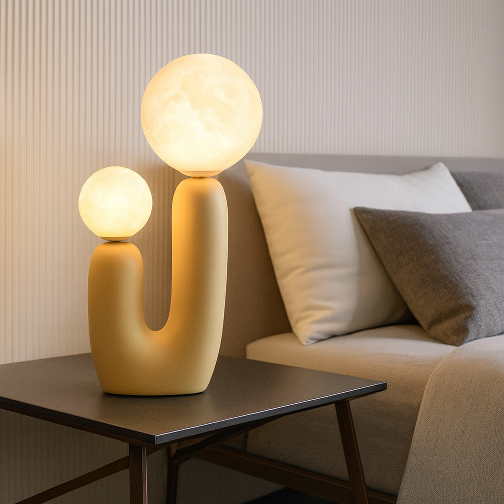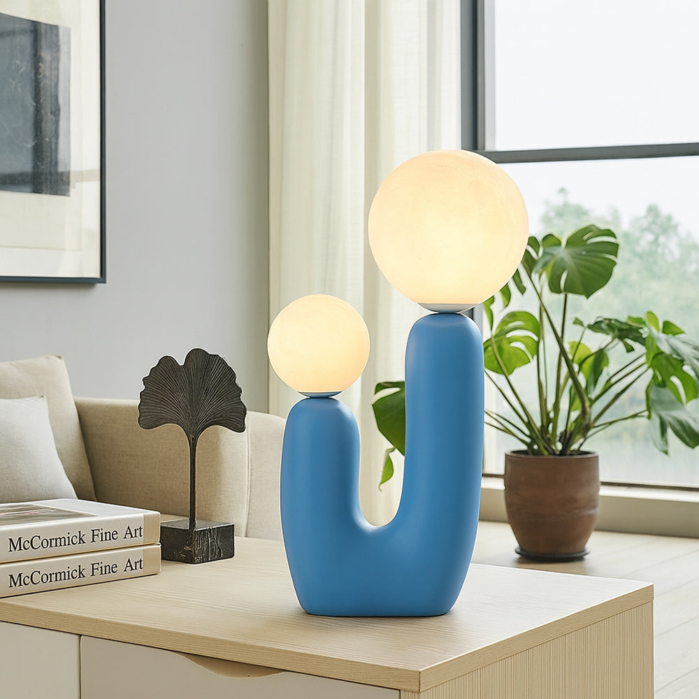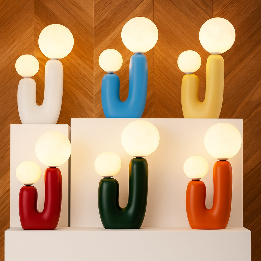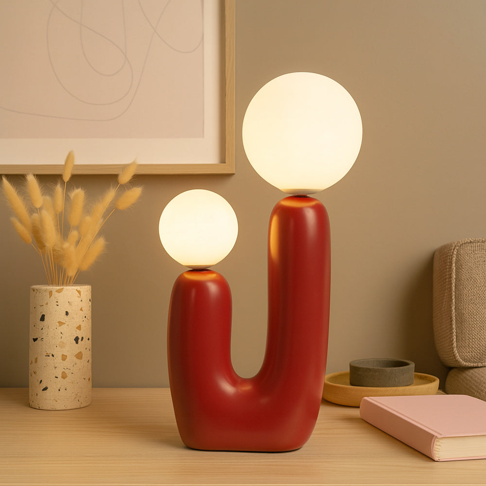 Lampada da tavolo dal design scultoreo e contemporaneo, realizzata in resina con una forma stilizzata che richiama la figura di un genitore e un bambino, evocando un senso di protezione e complicità. La struttura a U ospita due sfere in ABS di diverse dimensioni, che diffondono una luce morbida e accogliente. Dotata di due portalampada G9, compatibili con lampadine non incluse, questa lampada è pensata per offrire un’illuminazione decorativa e funzionale. Il cavo lungo circa 2 metri consente una facile collocazione anche lontano dalle prese, mentre il pratico interruttore ON/OFF posto sul cavo garantisce un utilizzo intuitivo. Perfetta per arricchire ambienti living, comodini, consolle d’ingresso o angoli lettura, si integra armoniosamente in spazi moderni, minimalisti o eclettici grazie alla sua forma giocosa e ai colori vivaci disponibili: Bianco, Verde, Arancio, Giallo, Blu e Rosso. Un complemento d’arredo che unisce estetica e praticità, trasformando la luce in un gesto di stile.