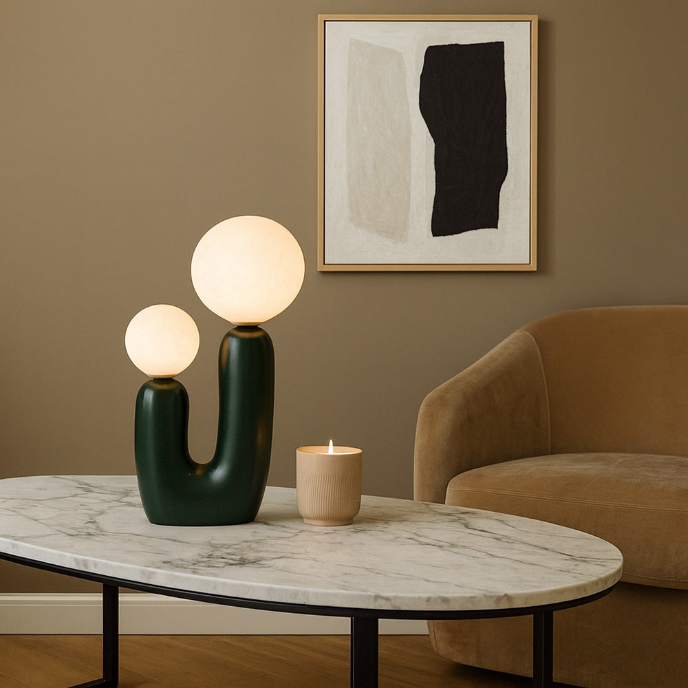 • Lampada da tavolo dal design scultoreo e contemporaneo, realizzata in resina con una forma stilizzata che richiama la figura di un genitore e un bambino, evocando un senso di protezione e complicità. La struttura a U ospita due sfere in ABS di diverse dimensioni, che diffondono una luce morbida e accogliente. Dotata di due portalampada G9, compatibili con lampadine non incluse, questa lampada è pensata per offrire un’illuminazione decorativa e funzionale. Il cavo lungo circa 2 metri consente una facile collocazione anche lontano dalle prese, mentre il pratico interruttore ON/OFF posto sul cavo garantisce un utilizzo intuitivo. Perfetta per arricchire ambienti living, comodini, consolle d’ingresso o angoli lettura, si integra armoniosamente in spazi moderni, minimalisti o eclettici grazie alla sua forma giocosa e ai colori vivaci disponibili: Bianco, Verde, Arancio, Giallo, Blu e Rosso. Un complemento d’arredo che unisce estetica e praticità, trasformando la luce in un gesto di stile.