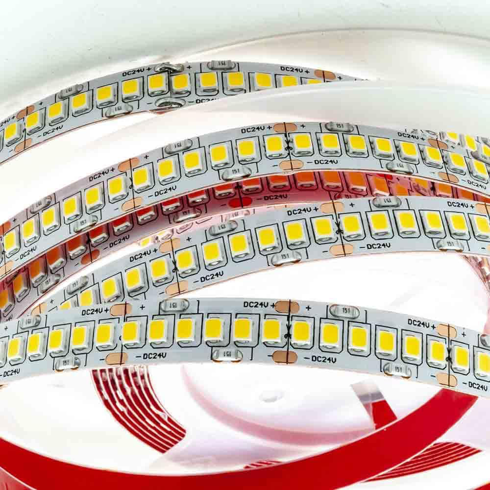 Porta la luce professionale direttamente nei tuoi ambienti con questa Strip LED da 5 metri, progettata per garantire prestazioni eccezionali e massima versatilità, con ben 600 LED totali, 120 per ogni metro, progettata per offrire un’illuminazione potente e uniforme. Con una potenza complessiva di 61 watt, pari a 12 watt per metro, genera un flusso luminoso di 5490 lumen, ovvero 1098 lumen per metro, garantendo una resa luminosa continua senza zone d’ombra. La striscia è completamente flessibile, dotata di biadesivo per un’installazione semplice e immediata su qualsiasi superficie, ed è possibile tagliarla ogni 2,5 cm lungo i segni di taglio per adattarla a qualsiasi progetto. Può essere collegata direttamente tramite un normale alimentatore 24V DC non incluso. È disponibile in tre varianti di temperatura colore: luce fredda 6500K, luce calda 3000K e luce naturale 4000K, per soddisfare ogni esigenza di illuminazione sia decorativa che funzionale. Ideale per illuminare cucine, soggiorni, vetrine, spazi commerciali o per dare un tocco scenografico a qualsiasi ambiente. La sua potenza e densità di LED la rendono perfetta sia per uso decorativo che funzionale.