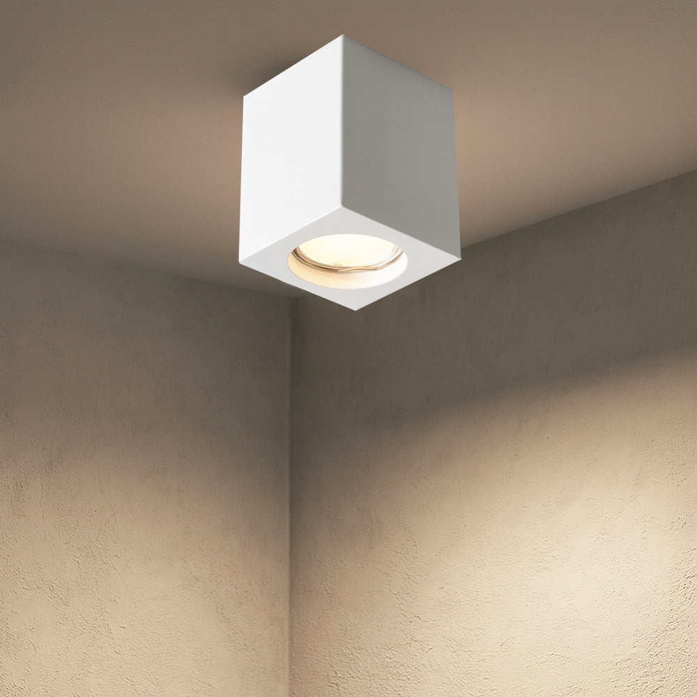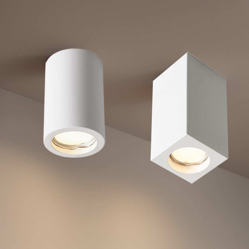 Lampada da soffitto in gesso grezzo, un elemento minimale ed elegante che si adatta perfettamente a ogni tipologia di ambiente, dal privato al pubblico. Può essere lasciata al naturale per un effetto moderno e discreto oppure verniciata secondo il proprio gusto per armonizzarsi con lo stile della casa o dello spazio. Il design essenziale è in linea con le attuali tendenze dell’interior design e concilia funzione ed estetica, offrendo un’illuminazione sofisticata e raffinata. Versatile e discreta, trova posto in cucine, bagni e zone living, dove aggiunge un tocco di modernità senza mai risultare invasiva. L’installazione è semplice grazie alla piastra in metallo posta sul retro del faretto, invisibile una volta montato. È disponibile in due forme, cilindro o cubo, per rispondere a diverse esigenze estetiche. La confezione include tasselli, viti e portalampada GU10. Nota bene: la lampada è compatibile esclusivamente con lampade LED e non può essere utilizzata con alogene o incandescenza.