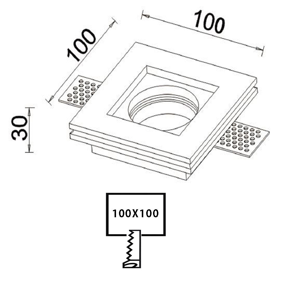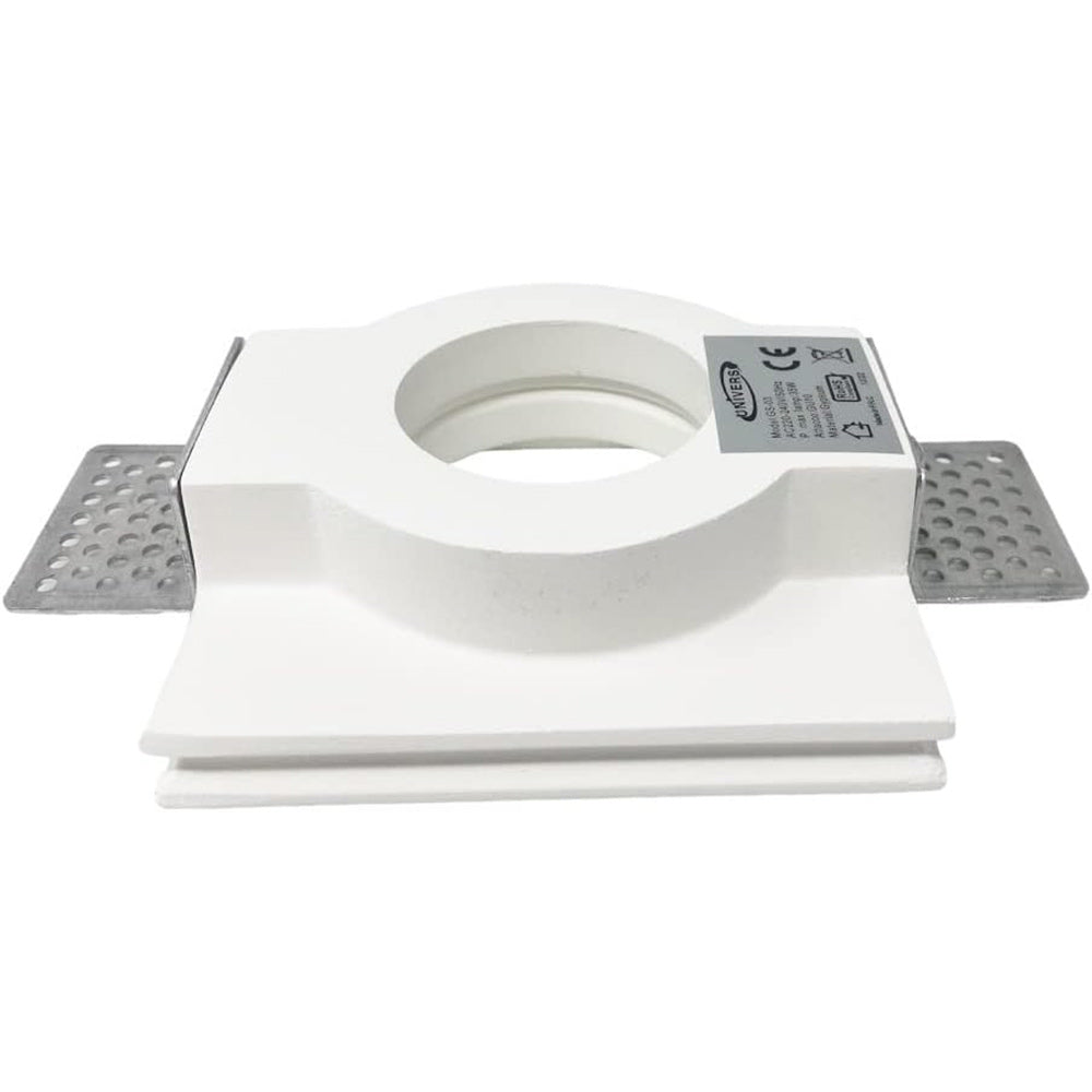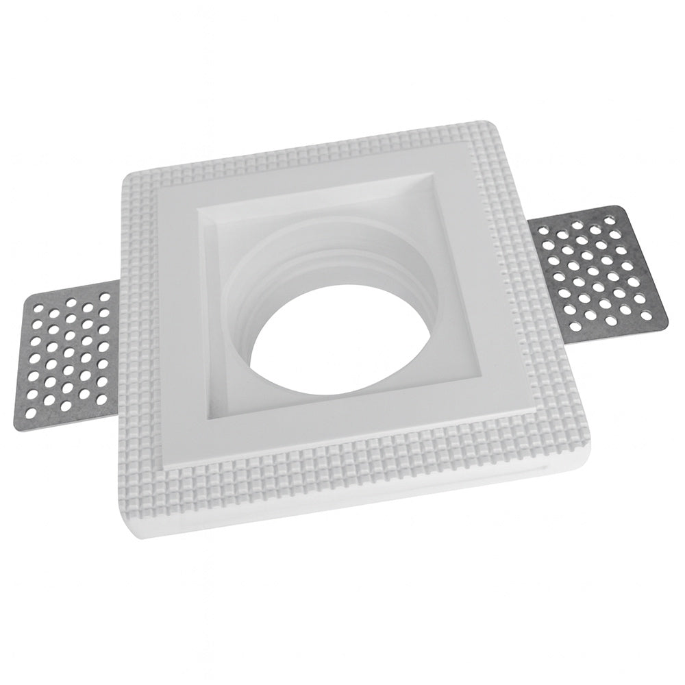 Portafaretto in gesso dal design slim, ideale per installazioni ad incasso a scomparsa. La forma quadrata tinteggiabile consente di integrarlo perfettamente nel cartongesso, garantendo un effetto elegante e discreto. Compatibile con lampade GU10, GU5.3 e MR16, una volta installato, stuccato e rasato può essere tinteggiato con pittura murale così che la cornice scompaia alla vista e rimanga visibile soltanto il foro della lampada. È una soluzione raffinata e funzionale per illuminare ambienti interni come corridoi, soggiorni, cucine, saloni, ingressi, negozi, attività commerciali e uffici, offrendo un’illuminazione moderna e integrata che valorizza lo spazio senza appesantirlo. Nella confezione sono inclusi alette e molla per il fissaggio del faretto, assicurando un montaggio pratico e sicuro.