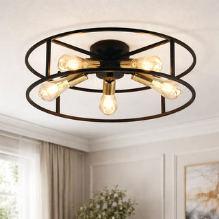 Plafoniera stile industriale in metallo nero 5 portalampada oro E27