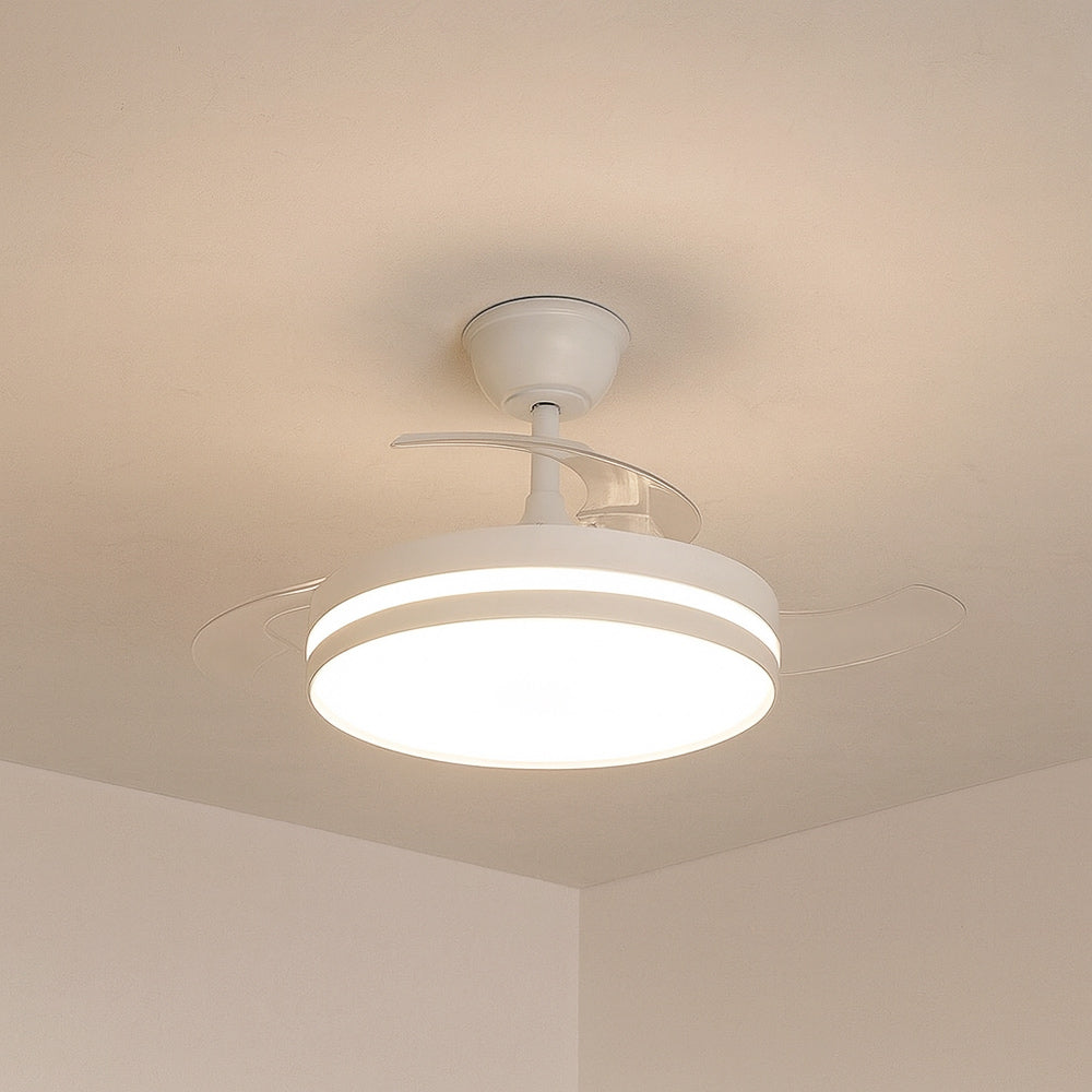 Questa innovativa lampada da soffitto è la soluzione perfetta per chi desidera unire stile e comfort nella propria casa. Grazie all'illuminazione di alta qualità della ventilazione, questo dispositivo si adatta a qualsiasi esigenza. Con tre modalità di luce (calda, fredda, naturale) regolabili tramite telecomando, puoi creare l'atmosfera perfetta per ogni momento della giornata. Il ventilatore con una potenza di 30 watt e sei velocità, azionabile separatamente dall'illuminazione, garantisce un flusso d'aria fresco e piacevole senza disturbi. Le luci trasparenti si aprono e si chiudono automaticamente con la rotazione del motore, rendendo la lampada elegante e discreta quando il ventilatore è spento. Il telecomando ti permette di controllare tutte le funzioni della lampada da qualsiasi punto della stanza. Inoltre abbiamo la possibilità d'invertire la rotazione delle pale, questo consente di avere un flusso d'aria diretto (verso il basso) o indiretto (verso l'alto). Con 56W di potenza e 6500 lumen di flusso luminoso, illumina in modo ottimale ambienti di medie dimensioni.