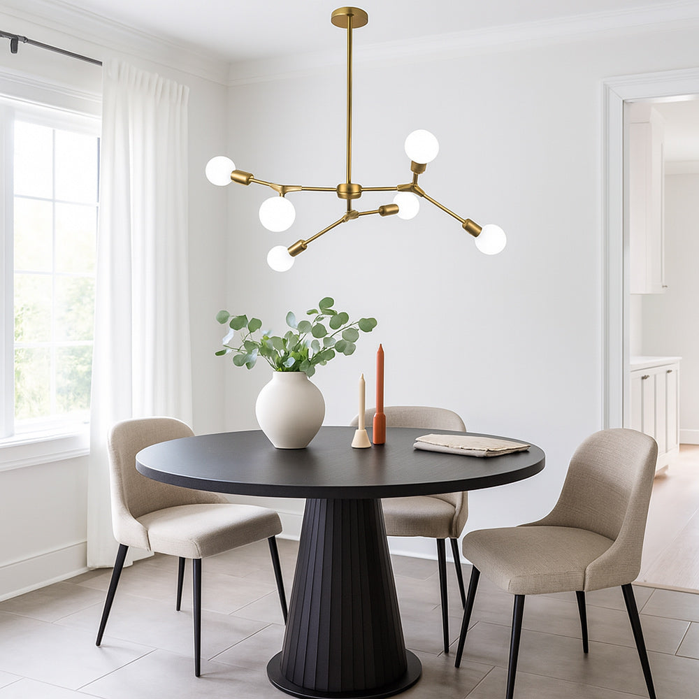 Questo lampadario moderno a sei luci è una dichiarazione di stile che unisce geometria essenziale e raffinatezza luminosa. La struttura in metallo con finitura bronzo si sviluppa attorno a un asse centrale da cui si diramano tre bracci orizzontali, ciascuno con due attacchi E27 alle estremità, per un totale di sei punti luce. La disposizione simmetrica crea un equilibrio visivo che si adatta perfettamente a spazi contemporanei, ambienti dal gusto industriale o interni dal design più eclettico. La sua presenza è discreta ma scenografica, capace di valorizzare il soffitto e dare carattere all’ambiente senza sovraccaricarlo. Le lampadine non sono incluse, lasciando spazio alla personalizzazione: puoi scegliere tonalità calde per un’atmosfera accogliente o luci fredde per un effetto più moderno e definito. Ideale per soggiorni, cucine, sale da pranzo o ambienti open space, questo lampadario si installa facilmente a soffitto e diventa subito protagonista grazie alla sua linea pulita e alla finitura luminosa che riflette la luce con delicatezza. Un elemento d’arredo che illumina con stile, pensato per chi cerca funzionalità e bellezza in un unico gesto.