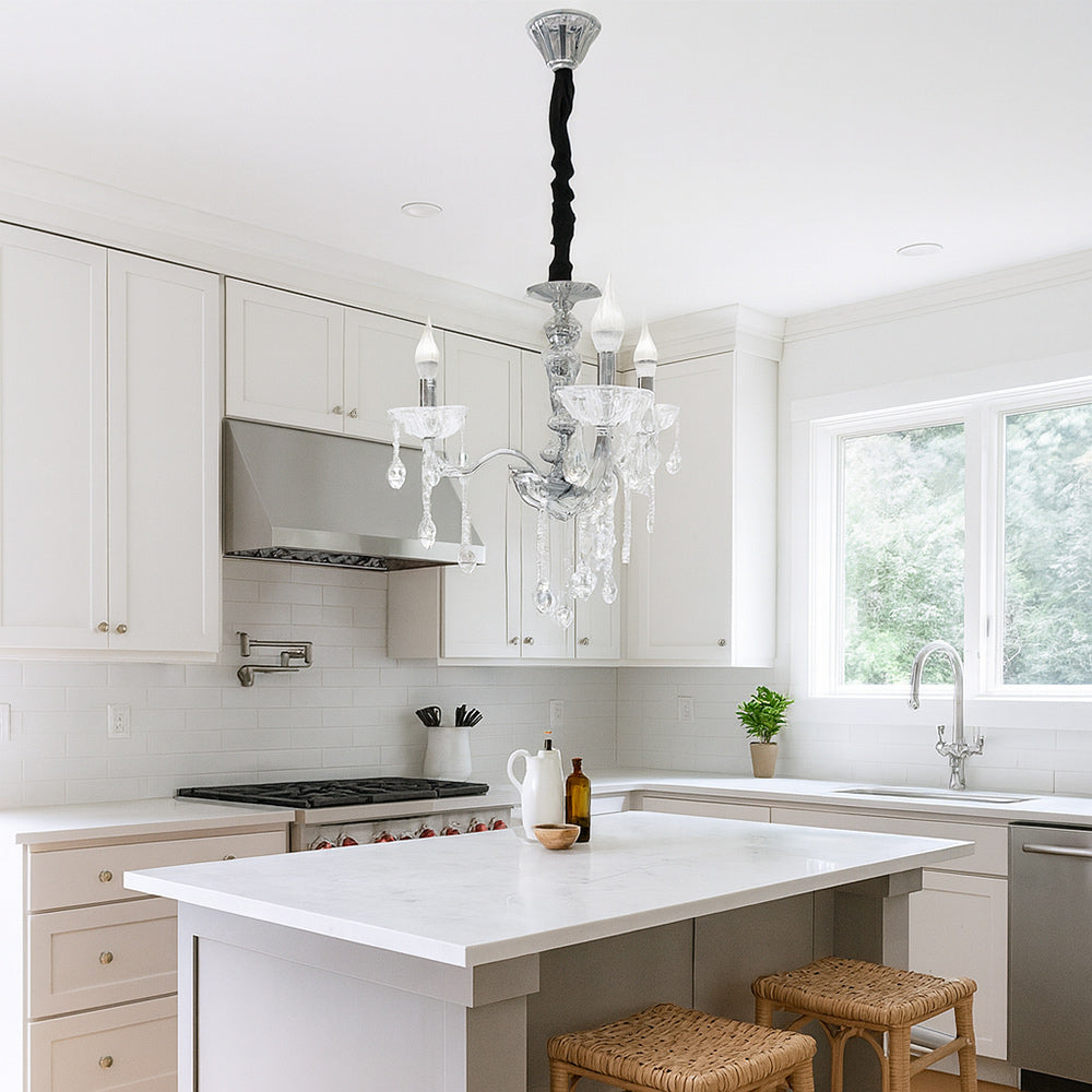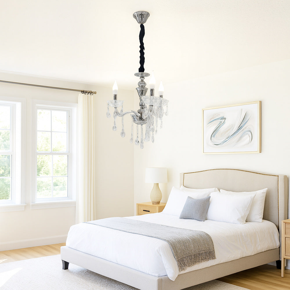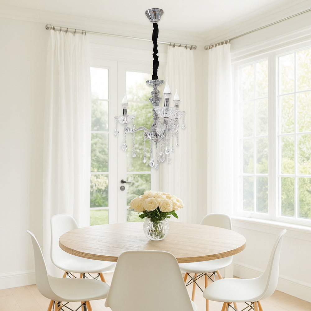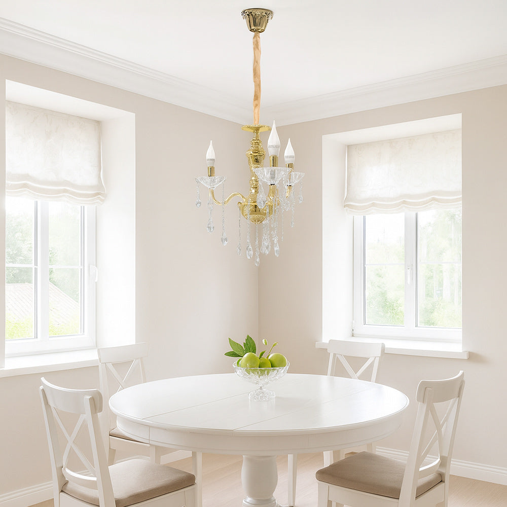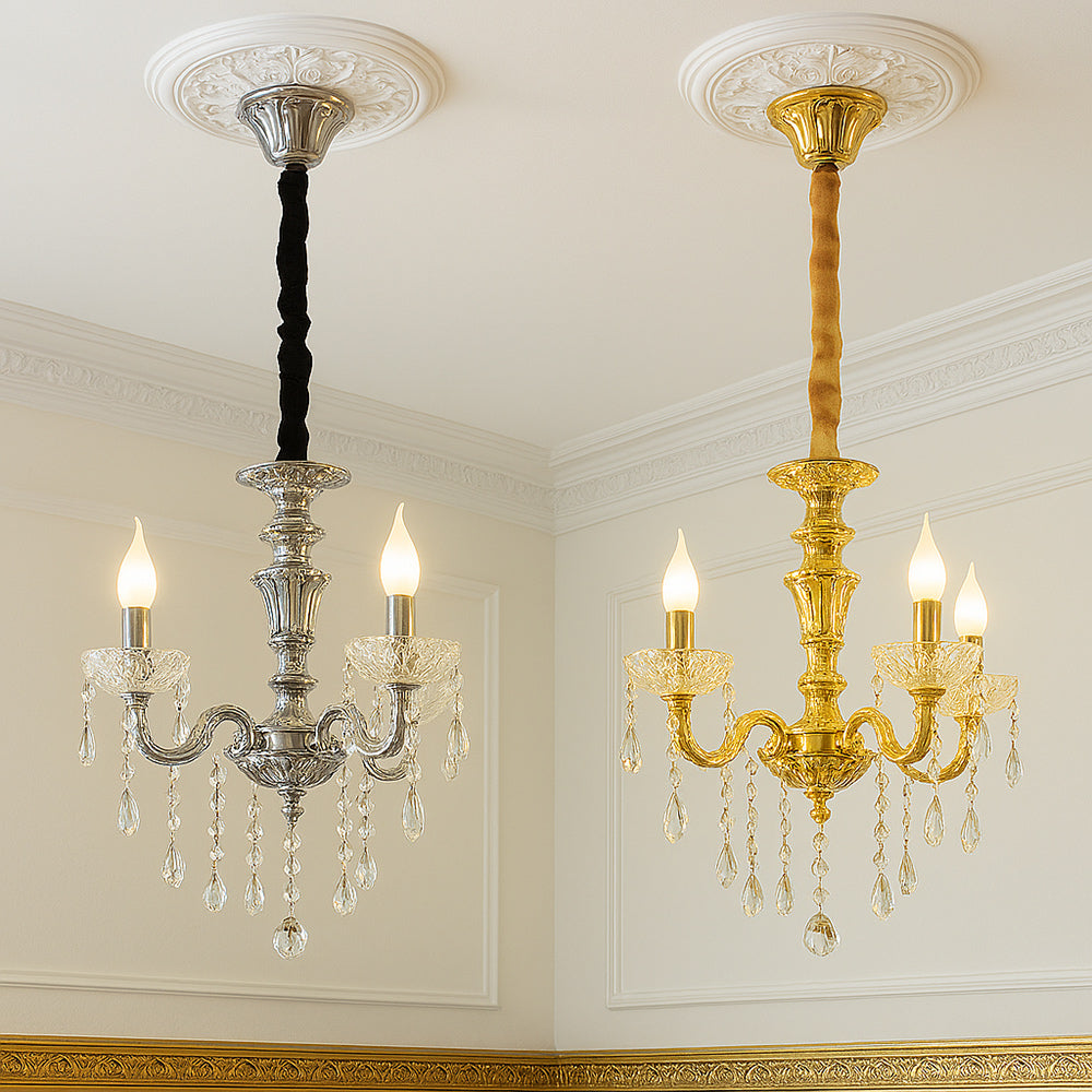 Un lampadario che non illumina soltanto, ma racconta un’atmosfera. Questo modello a 3 bracci nasce per trasformare ogni stanza in un luogo più caldo, elegante e accogliente. Le sue coppe con portalampada E14 accompagnano la luce con delicatezza, mentre le sfere di cristallo pendenti catturano ogni riflesso e lo diffondono in un bagliore morbido e romantico, capace di avvolgere l’ambiente in un fascino immediato. Il suo design retrò, ispirato alla tradizione ma reinterpretato con gusto contemporaneo, lo rende un complemento ideale per chi desidera aggiungere un tocco di classe senza tempo alla propria casa. Disponibile nelle varianti oro e argento, si integra con naturalezza sia in arredi moderni che classici, diventando un punto luce che non passa inosservato. Le dimensioni compatte lo rendono perfetto per sala da pranzo, soggiorno o camera da letto, dove può esprimere al meglio la sua presenza raffinata senza appesantire lo spazio. Facile da installare e semplice da mantenere, è una scelta pensata per durare nel tempo e valorizzare ogni ambiente con una luce che emoziona, accoglie e impreziosisce. Un dettaglio che fa la differenza, ogni giorno.