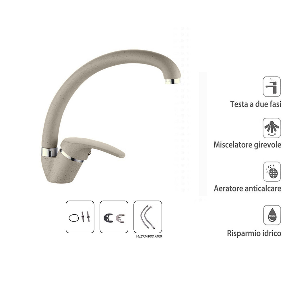Rubinetto da cucina canna alta orientabile moderno colore avena