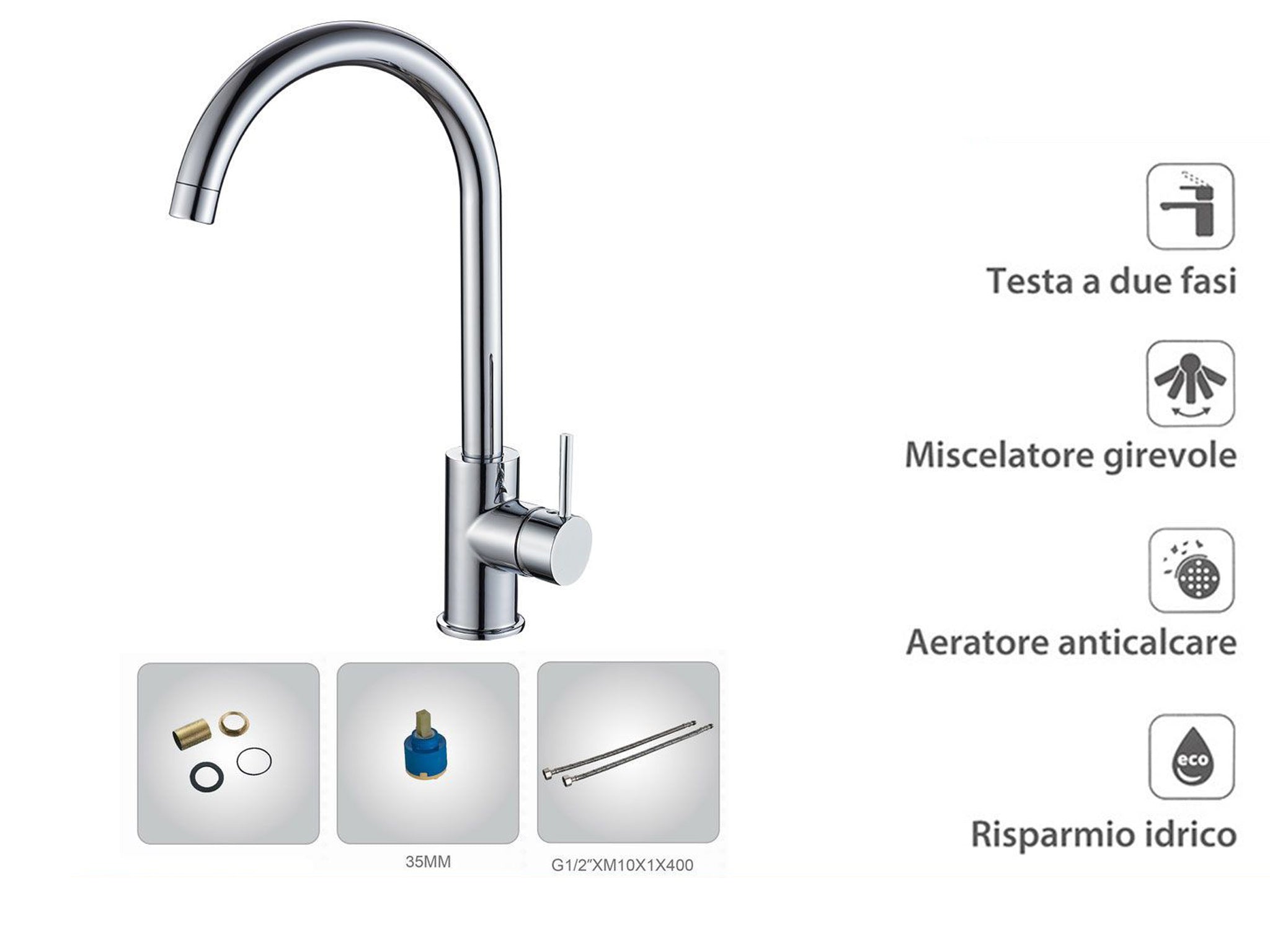 Linee pulite, finitura cromata lucida e un design contemporaneo rendono questo rubinetto da cucina la scelta ideale per ambienti moderni e curati. La canna alta ad arco garantisce ampio spazio sotto il getto, facilitando il riempimento di pentole voluminose e la pulizia quotidiana. Il beccuccio orientabile offre massima versatilità, adattandosi perfettamente sia a lavelli a una vasca che a quelli a doppia vasca. Realizzato in ottone cromato di alta qualità, è resistente alla corrosione e progettato per durare nel tempo, mantenendo intatta la sua brillantezza. Fornito completo di due flessibili per un’installazione semplice e immediata, questo rubinetto unisce estetica e praticità, trasformando ogni gesto in cucina in un’esperienza fluida e piacevole.