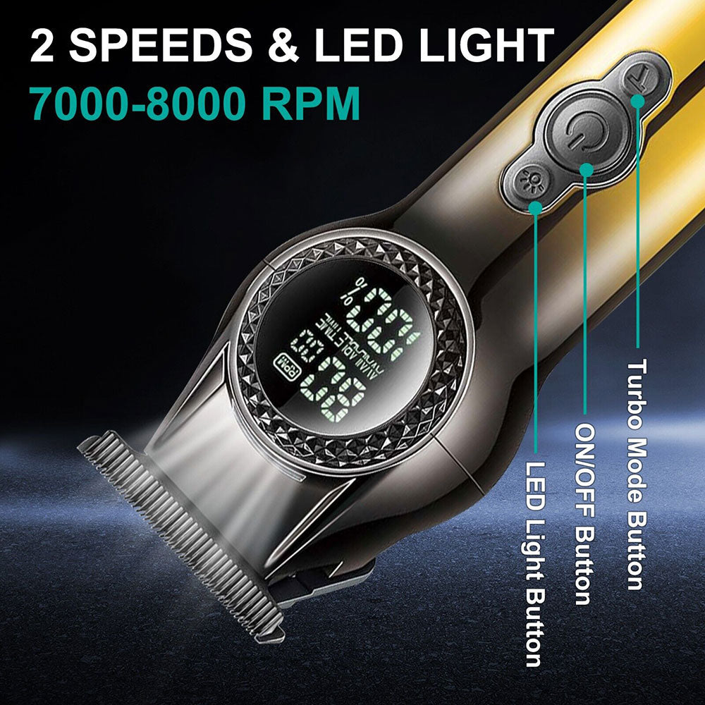 Desideri un taglio di capelli impeccabile e personalizzato comodamente a casa tua? Questo rasoio taglia capelli ricaricabile è la soluzione perfetta per te! Grazie ai 3 pettinini guida inclusi (1.5, 3 e 4.5 mm), potrai creare una moltitudine di stili, dal taglio corto e preciso a quello più lungo e definito. Il display digitale ti permette di monitorare costantemente lo stato della batteria e di selezionare la velocità ideale per il tuo taglio. Scegli tra due livelli di potenza per adattare il rasoio alla densità dei tuoi capelli e ottenere risultati ottimali. La luce LED integrata illumina le zone più difficili da raggiungere, garantendo una rasatura precisa e uniforme anche in condizioni di scarsa illuminazione. La batteria al litio da 2000 mAh offre ben 200 minuti di autonomia, sufficienti per più tagli senza interruzioni. Una ricarica completa di 2,5 ore ti permetterà di essere sempre pronto. Disponibile in due raffinate colorazioni, nero e oro, questo rasoio si adatta a qualsiasi stile e diventa un accessorio indispensabile per la tua routine di cura personale. L'olio lubrificante e la spazzola per la pulizia inclusi nella confezione ti permettono di mantenere il tuo rasoio sempre efficiente e igienizzato.