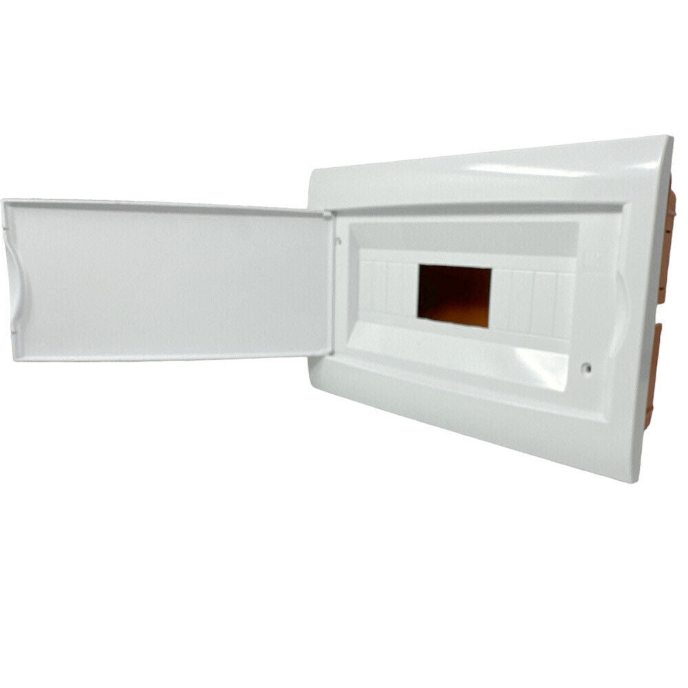 Centralino da incasso per 12 moduli con cornice bianca e portello bianco. Con guida DIN, materiale tecnopolimero isolante non propagante la fiamma e sportello in policarbonato. Glow Wire Test: 650 °C - Ball Pressure Test: 70°C - Impact test: IK07- Temperatura di installazione: -5°C+60°C. Grado di protezione: IP40. Standard: CEI EN 60670-1/CEI EN 60670-24