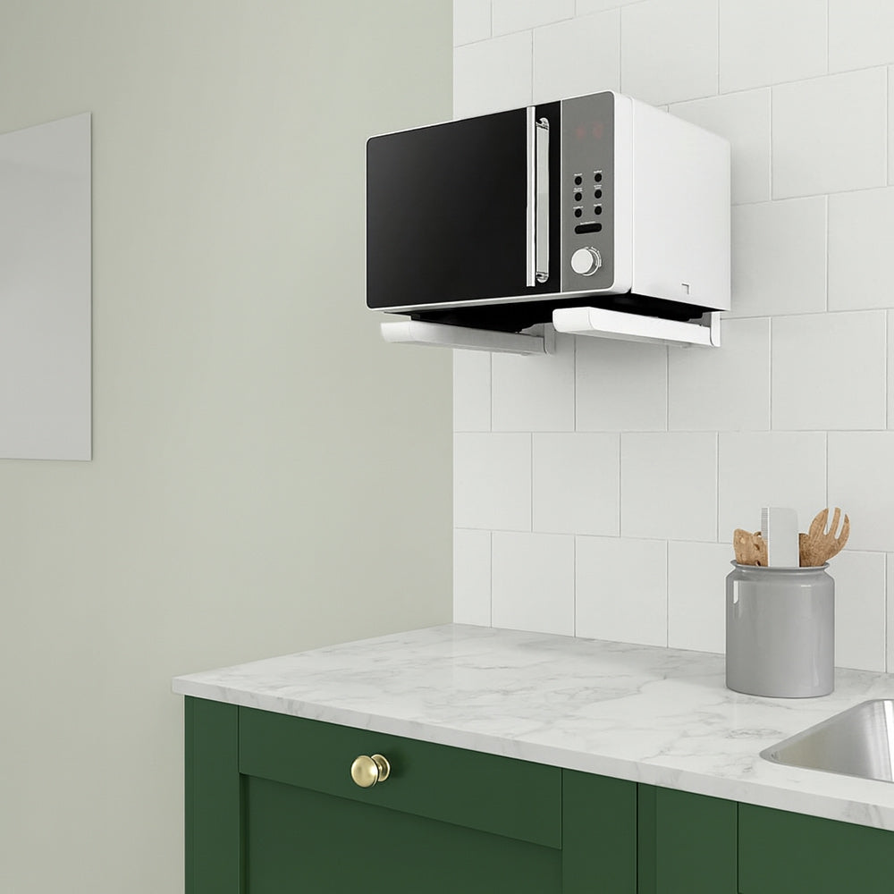 • Libera il piano di lavoro e dona un tocco ordinato alla tua cucina con queste staffe universali per microonde. Progettate per adattarsi alla maggior parte dei modelli standard (fino a 50 kg), ti permettono di sollevare il microonde e sfruttare al meglio lo spazio disponibile. Estensibili da 36 a 46 cm, si regolano facilmente in base alla profondità del tuo microonde per una compatibilità perfetta. La struttura è solida e affidabile, pensata per durare nel tempo e garantire una tenuta sicura. Disponibili in bianco o nero, si integrano armoniosamente in qualsiasi ambiente cucina, dal moderno al minimal. La confezione include tutto il necessario per l’installazione, per un montaggio semplice e veloce.