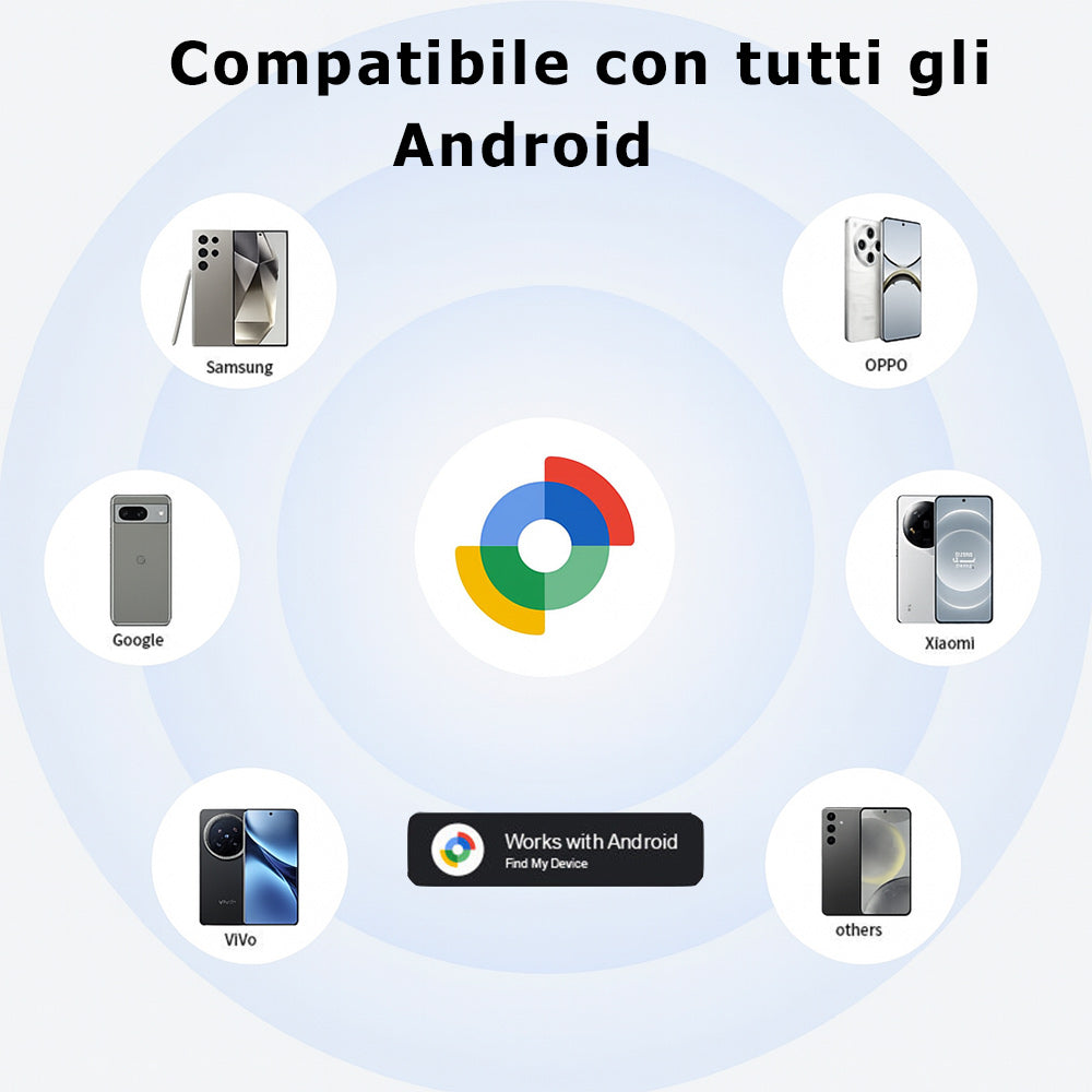 • Il localizzatore GPS compatibile solo con sistema operativo Android è un dispositivo rivoluzionario che ti consente di tracciare e localizzare facilmente i tuoi oggetti utilizzando l'app "Find Hub" con localizzazione mappe. Dotato di una funzione di allarme, puoi attivare un suono tramite l'app per cercare i tuoi oggetti, che verranno poi localizzati sulle mappe, questo dispositivo ti aiuterà a non perdere mai più i tuoi oggetti preziosi. Compatto e portatile, puoi portarlo sempre con te e avere la tranquillità di sapere dove si trovano le tue cose importanti. Un must per chiunque sia stanco di perdere le chiavi, il portafoglio, l'auto, la moto, gli animali domestici o altri oggetti essenziali. Facile da configurare e utilizzare, il localizzatore GPS per Android è la soluzione perfetta per mantenere traccia di ciò che conta di più. Assicurati di avere gli ultimi Aggiornamenti fatti.  Alimentato con batteria inclusa. Disponibile di colore Bianco o Nero spedito secondo disponibilità di magazzino.
