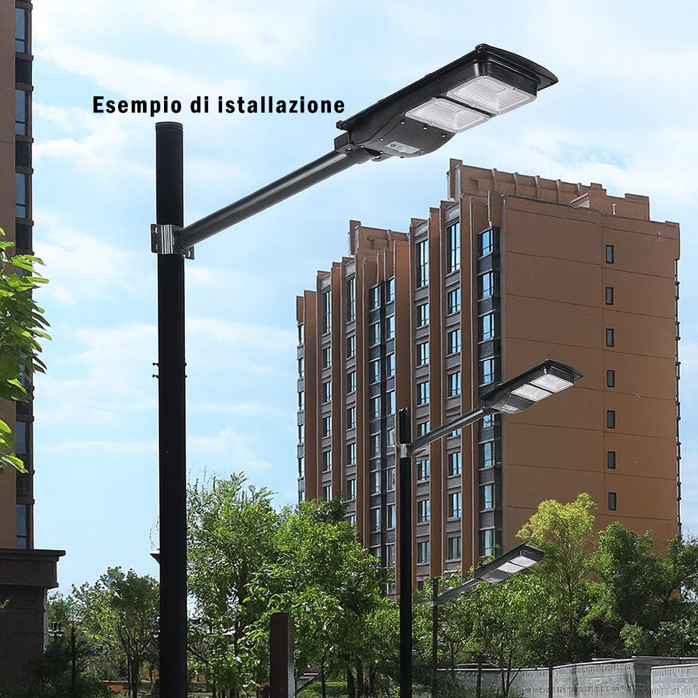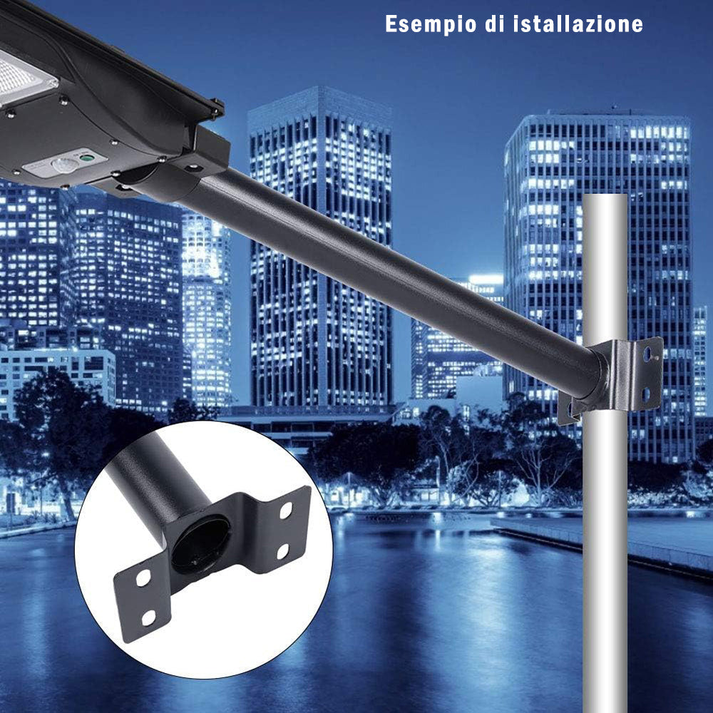 Staffa per lampione stradale robusta e affidabile, ideale per installazioni a parete o su pali esistenti tramite cravatta (non inclusa). Progettata per offrire una soluzione pratica e sicura al montaggio di lampioni LED, è facile da installare e realizzata con materiali di alta qualità, resistenti alla ruggine e pensati per durare nel tempo. Le dimensioni sono di 450 mm di lunghezza e 48 mm di diametro, perfette per garantire stabilità e compatibilità con i principali modelli di lampioni. Viti per l'istallazione incluse